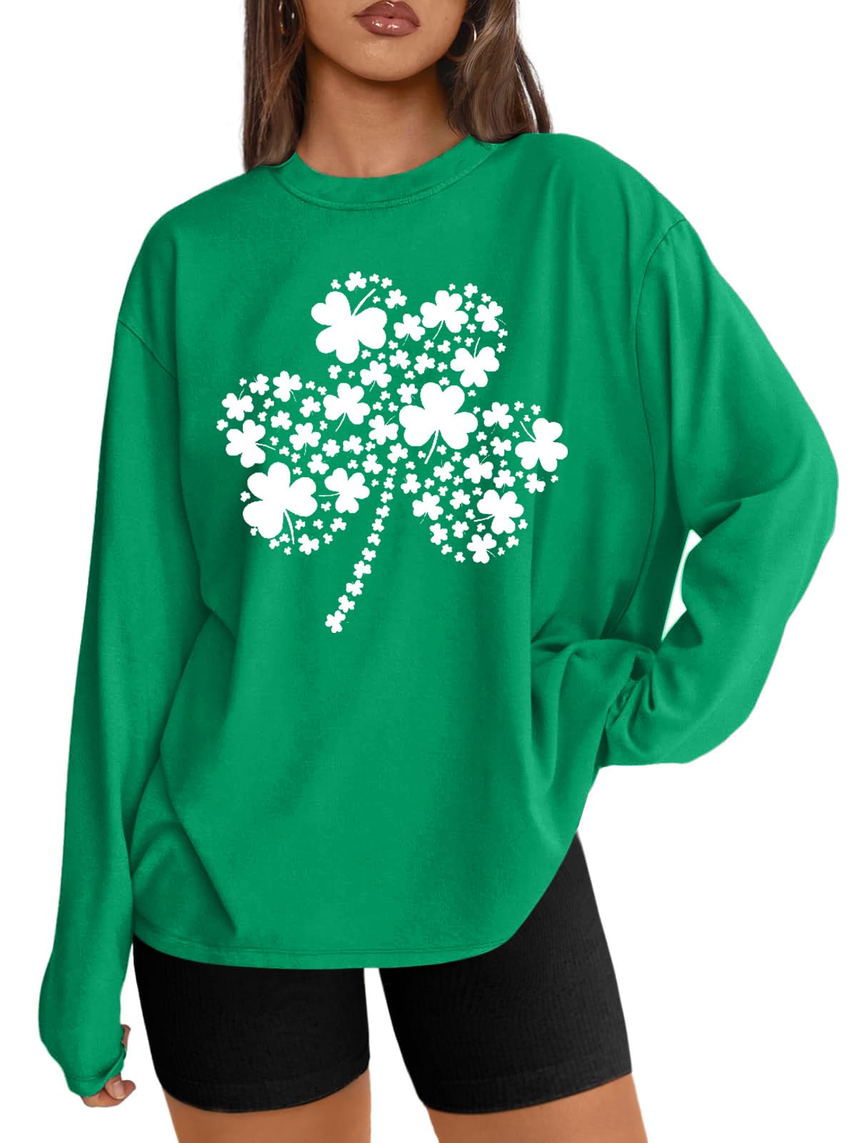br>Long Sleeve St. Patricks T-Shirt for Women Oversized Lucky Irish Shamrock Shirt St. patricks Graphic Tees Paddy's Day Tops