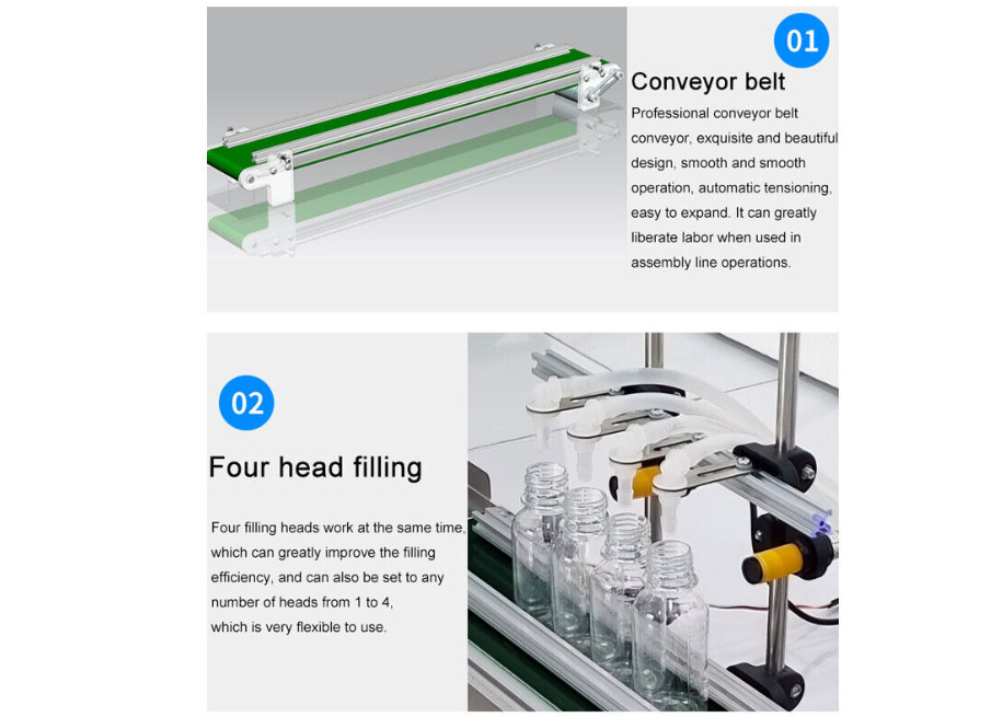 Typ: 4-Kopf-Flüssigkeitsabfüllmaschine mit Förderband