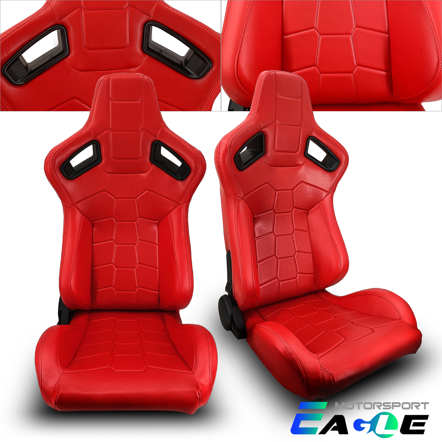 This is a pair of Racing Seats. These Racing Seats including Left and Right Side for driver and passenger front seats upgrade. Universal Fit most vehicles with appropriate seats mounting brackets. These racing seats REQUIRE universal mounting brackets for installation, and mounting brackets are not included with this racing seats, customers need to purchase the mounting brackets seperately. Comes with adjustment sliders for you to adjust the position of the seat on the seat frame, making the seat fully reclinable. Made of high quality cloth in Black/Red.