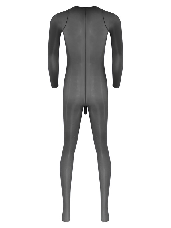 Mens Mesh Sheer Open Sheath Bodystockings Long Sleeve High Stretchy Jumpsuit
