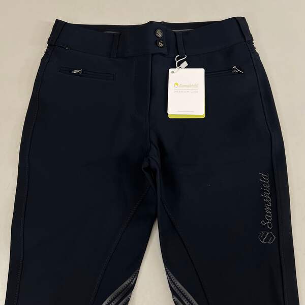 SAMSHIELD Chloe Metal Dots Equestrian Pants Women's Sz US 26, UK 8, FR 36 Black
