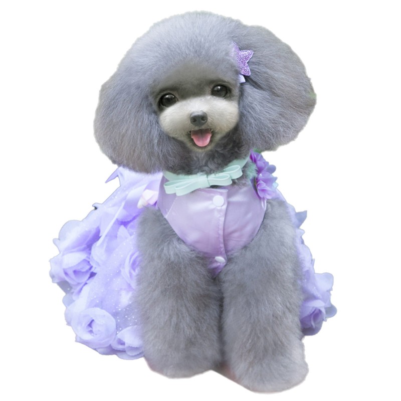 The 3D applique flowers and faux pearls decorations add a touch of elegance and femininity, making the dog look like a little princess.