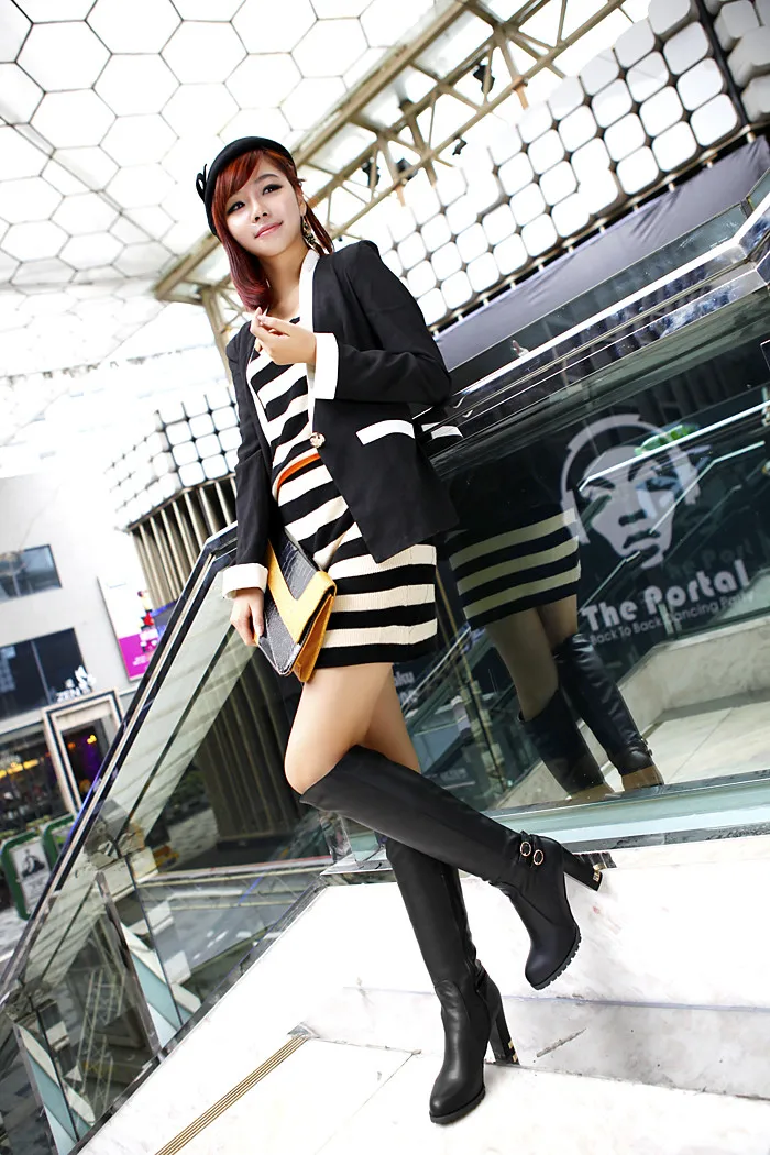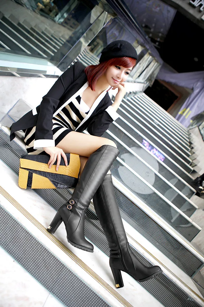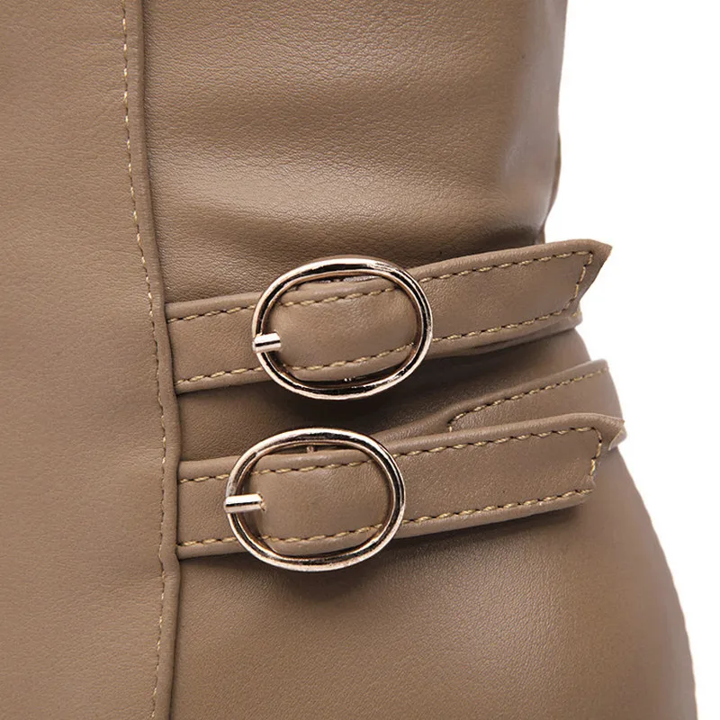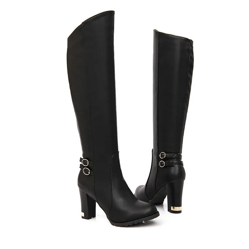 Winter Warm Fur Knee High Boots Womens Snow Boots High Heels Side Zipper Female Shoes Black Brown Apricot Large Size