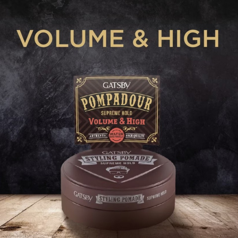 GATSBY Styling Pomade Supreme Hold is a water-based hair pomade designed to help shape pompadour, classic, and modern hairstyles with strong, reliable hold. It offers a sleek, high-shine finish and spreads smoothly through the hair, leaving a clean, non-sticky feel. The formula rinses out easily with water, making daily styling simple and convenient.