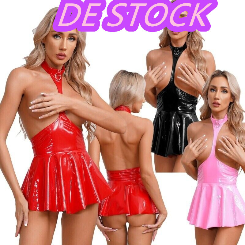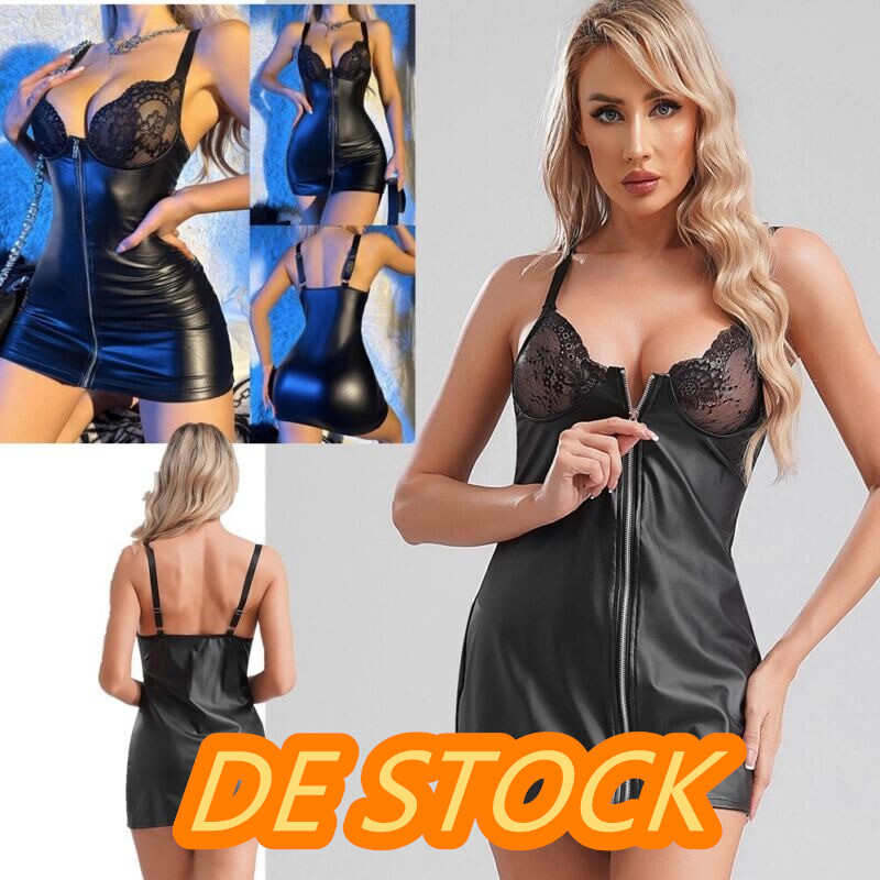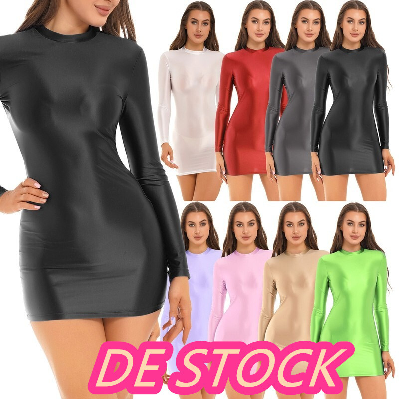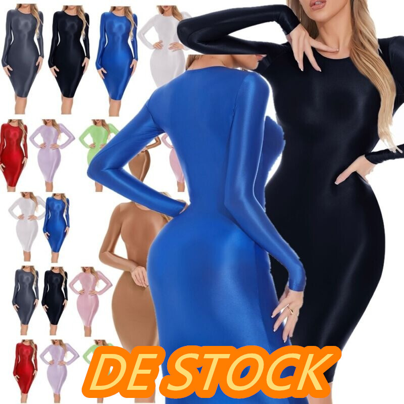 Metallisch glänzender Stoff hat einen einzigartigen Glanz und verleiht ihm einen sehr futuristischen Look. Das Kontrastdesign sorgt für einen schlanken Effekt, der Sie sexy macht.