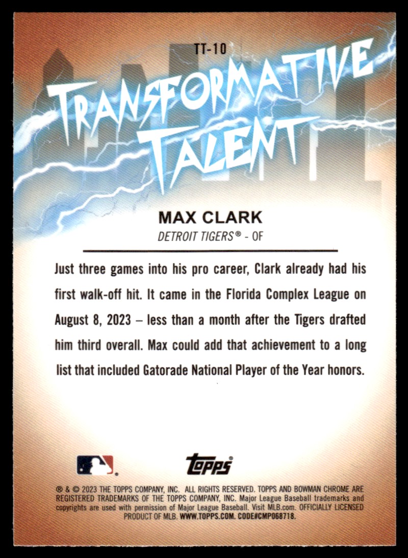 | 2023 Bowman Draft Transformative Talent Max Clark RC Detroit Tigers #TT-10 |
