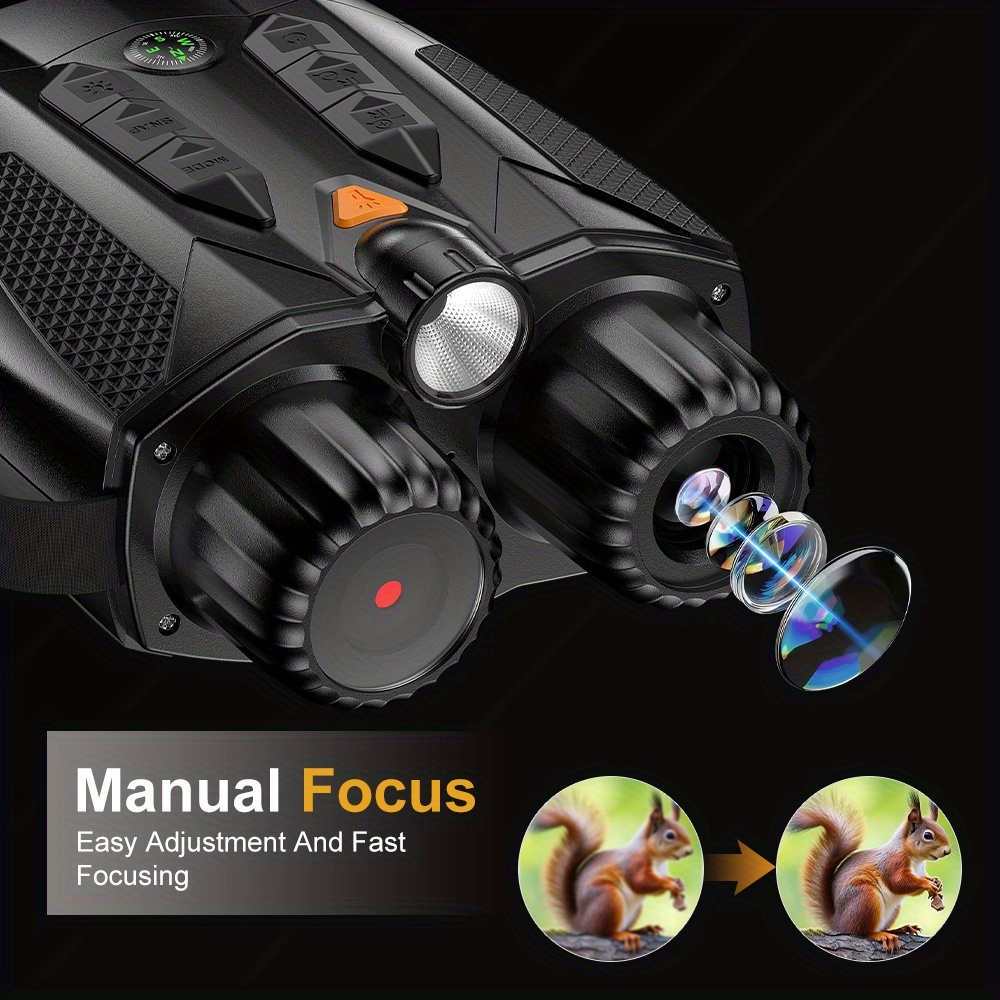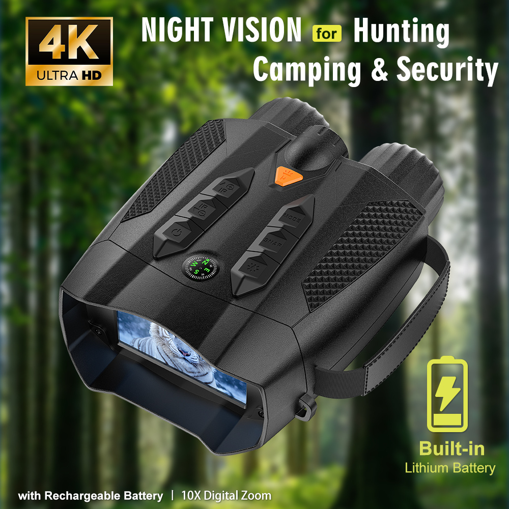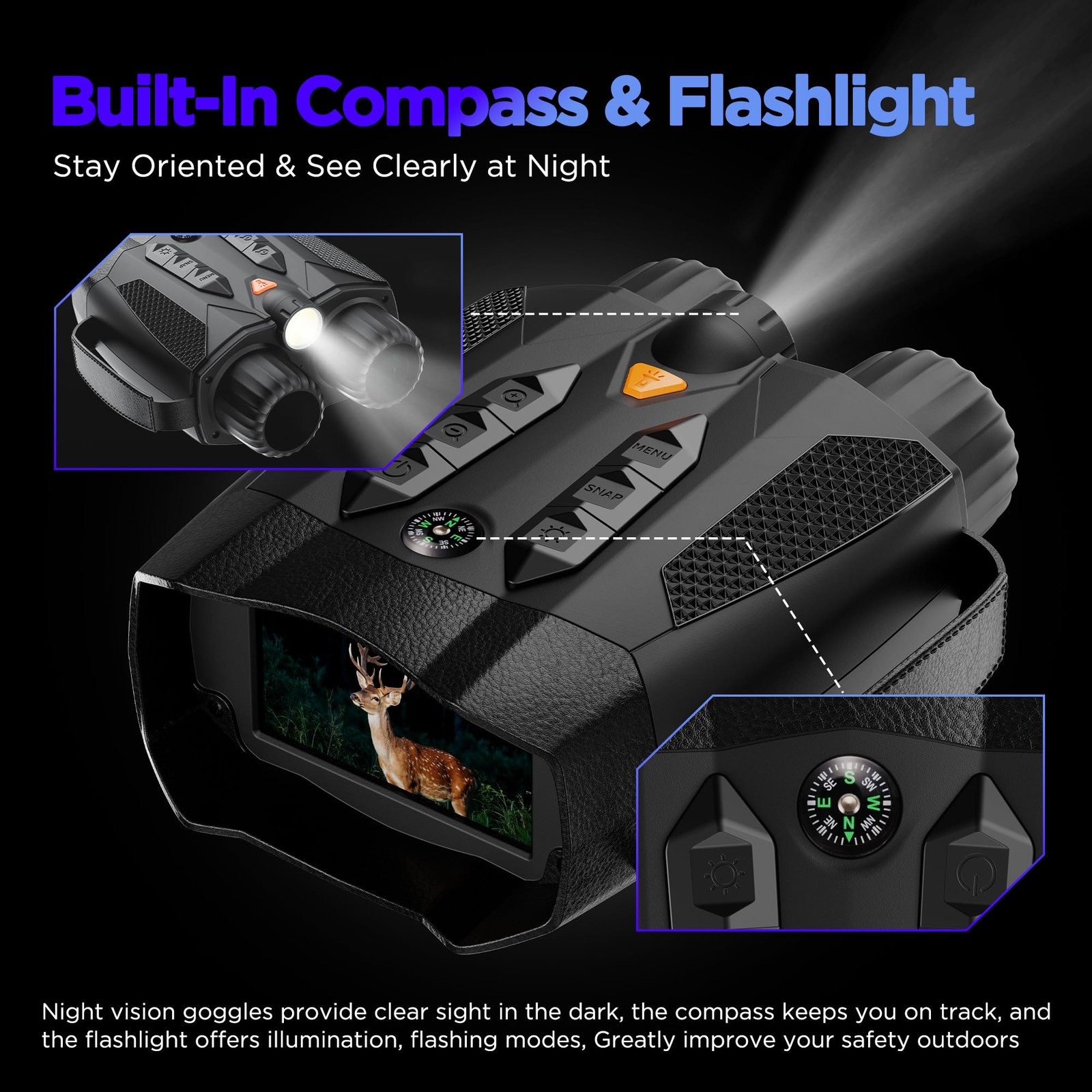 This night vision goggles is equipped with 7-level IR dimming, enabling a long viewing range of up to 2624 feet (about 800 meters) even in totally darkness. The night binoculars supports video recording, photography, and playback, with photo clarity reaching up to 48MP.