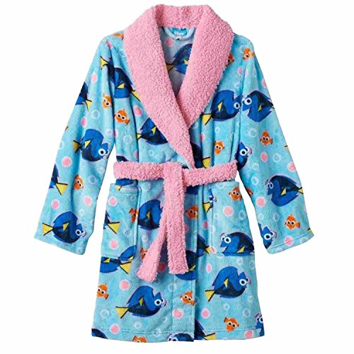 She'll be comfy and warm in this luxuriously plush and soft robe. In bright pastel colors with a super cute Dory and Nemo print In luxe fleece with a bright pink faux sherpa collar for extra warmth and comfort. Attached belt and roomy front pockets 100% polyester