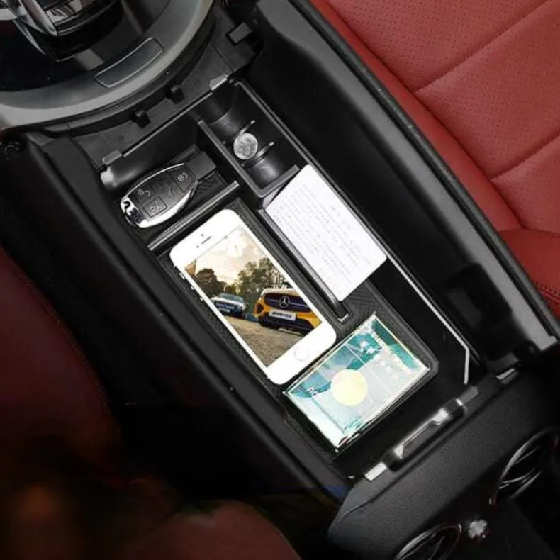 适用于梅赛德斯奔驰 C 级 GLC W205 X253 黑色汽车中控扶手储物盒手机储物盒汽车配件
