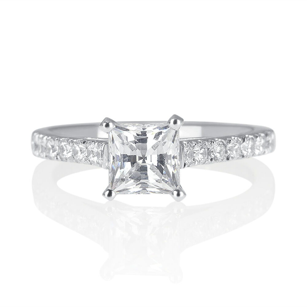1 CT Diamond Engagement Ring Princess Cut H/VS1 14K White Gold Size 7