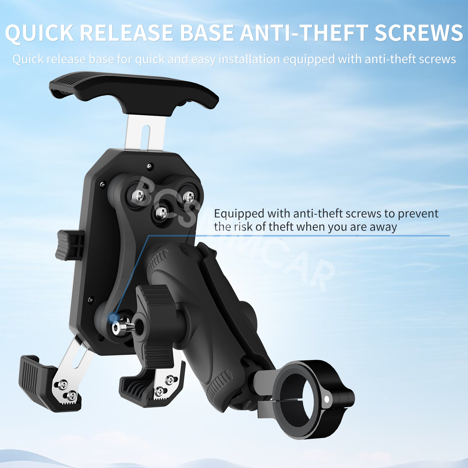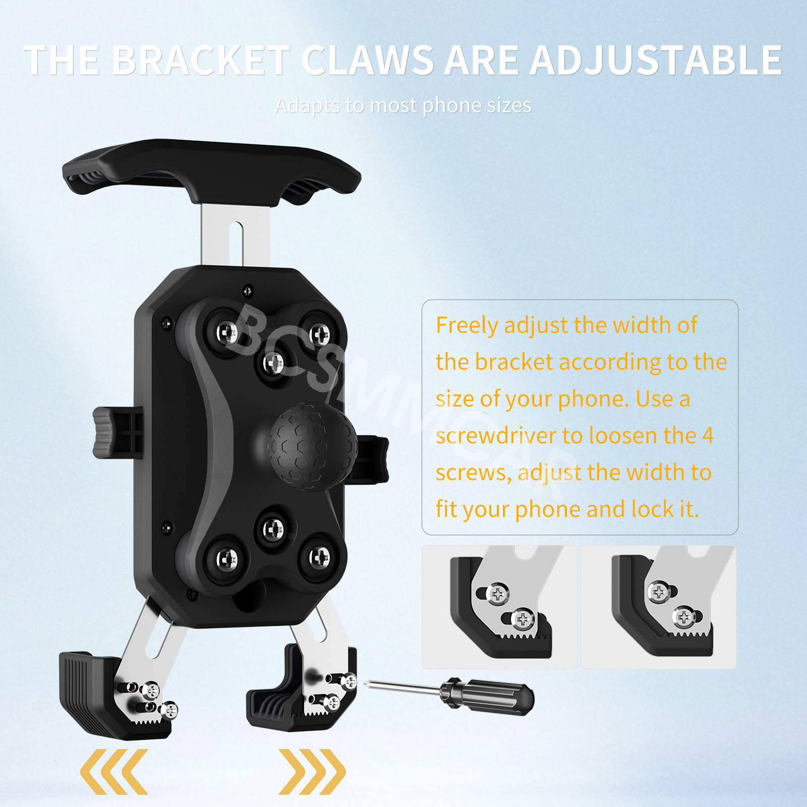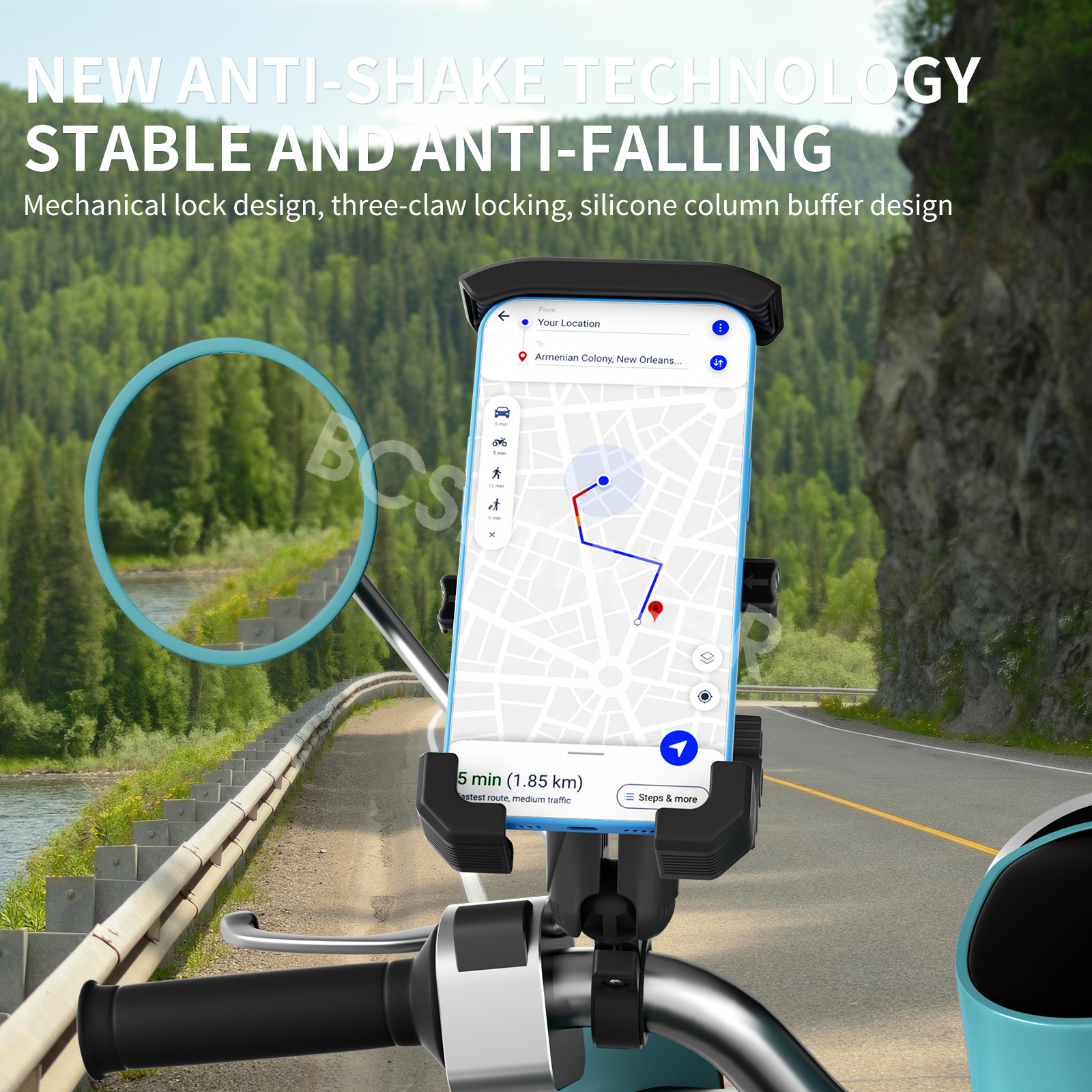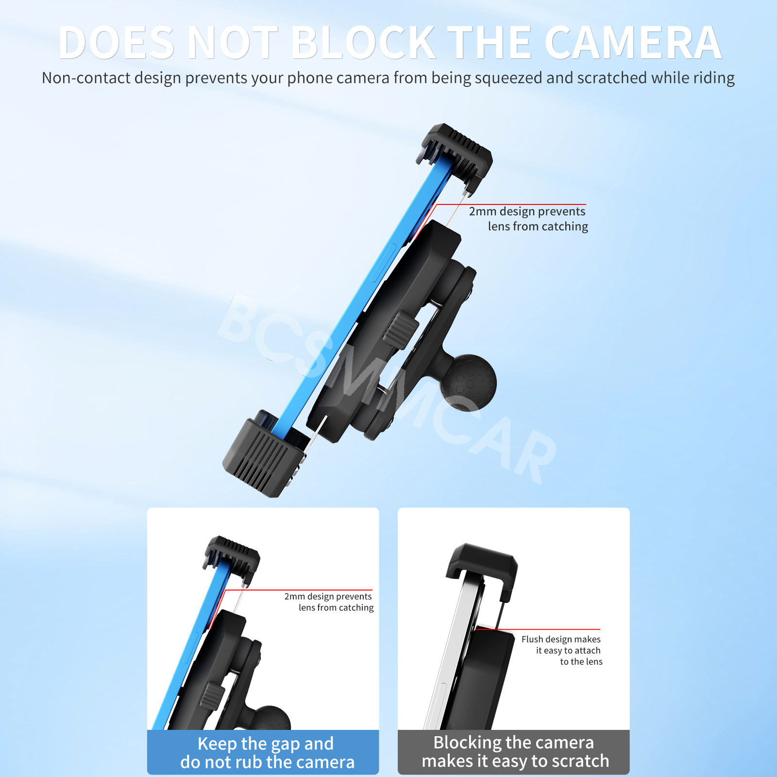 【1】 Three claw lock, combined with mechanical lock design, locks your phone in place [shockproof protection] to prevent scratches and vibrations. The mobile phone bicycle stand and mobile phone camera adopt a non-contact design, which can prevent the mobile phone camera from being squeezed and scratched during riding.