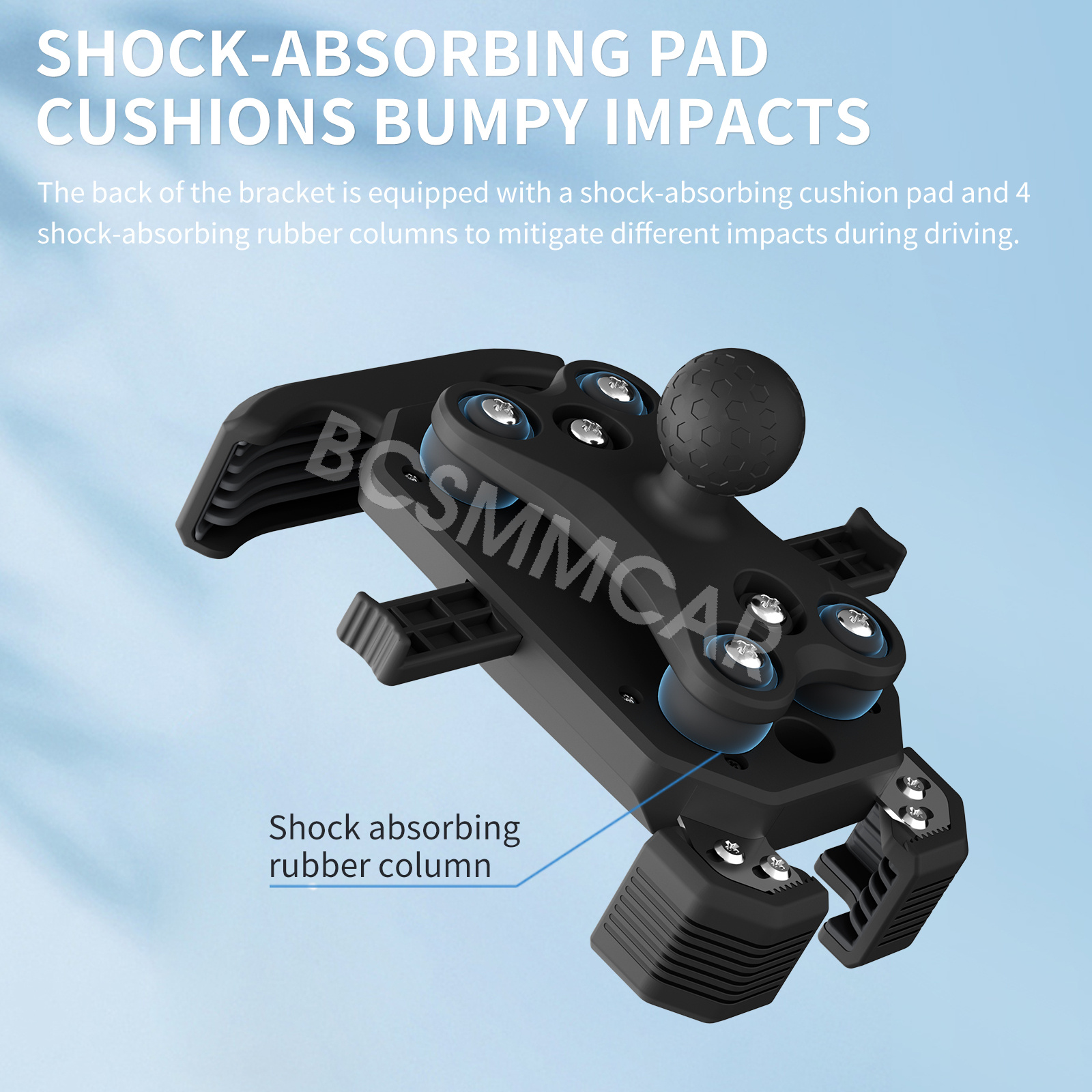 【4】 Thoughtful shock-absorbing pads protect the phone, silicone soft cushions tightly protect the phone from damaging the body, shock-absorbing modules, motorcycle bracket specific shock absorbers, high elasticity shock-absorbing rubber at the four corners, anti shake and shock-absorbing, strong shock-absorbing force. Using stainless steel telescopic arms and aluminum alloy handlebars to install the base, it is super sturdy! Even on bumpy roads, the bicycle phone holder can perfectly secure your phone.