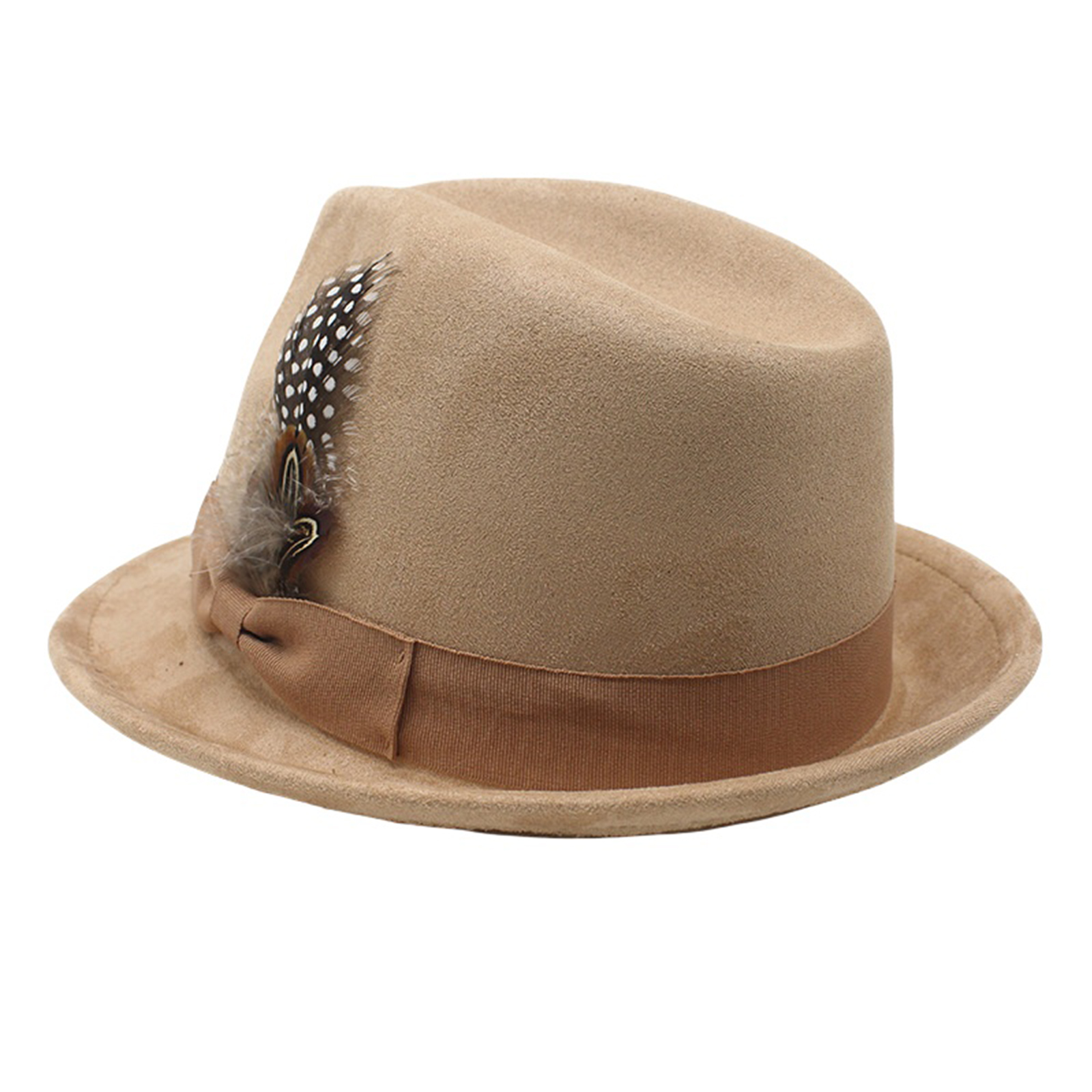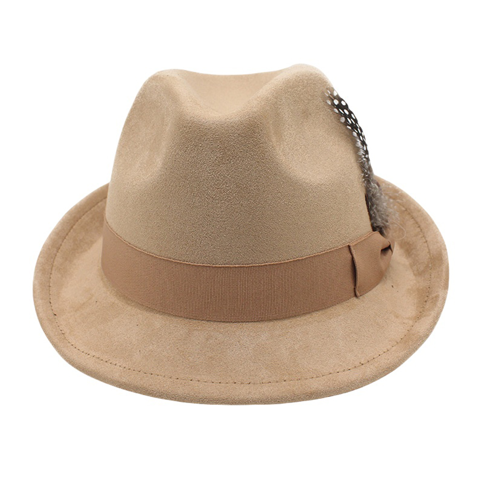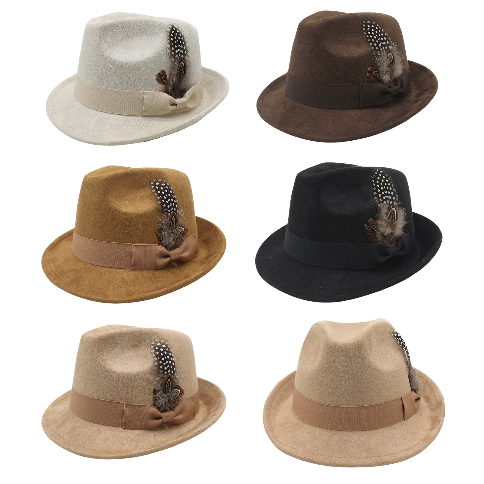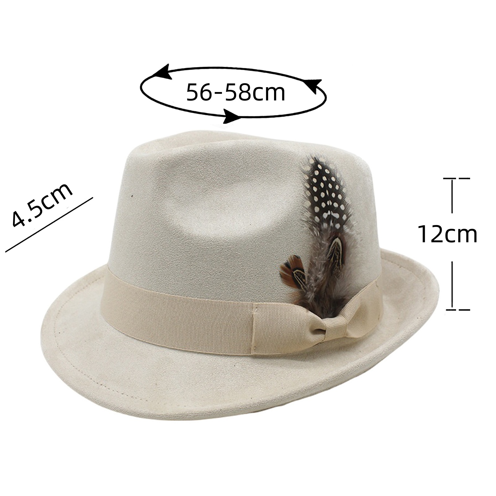 Classic Fedora Hats for Men Women Short Brim Felt Feather Hat Panama Dress Hat