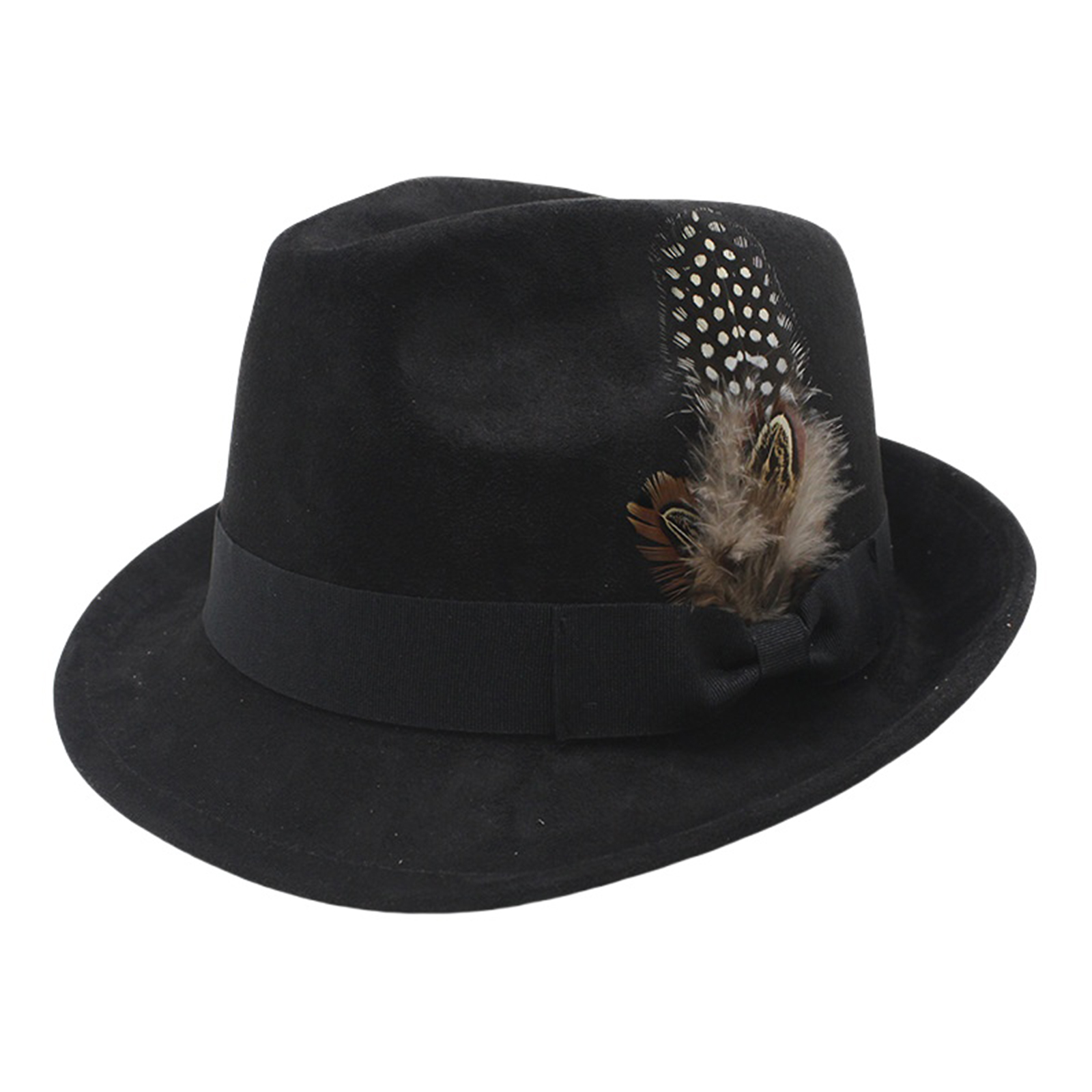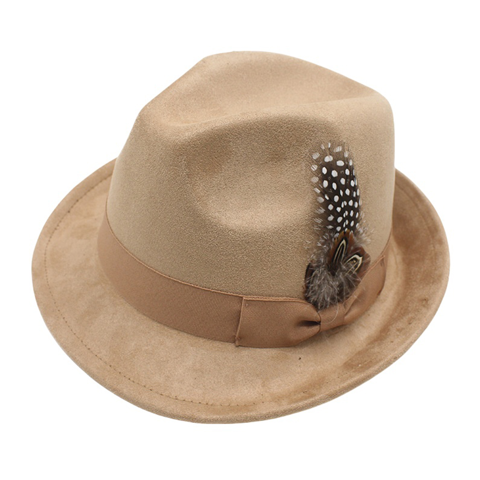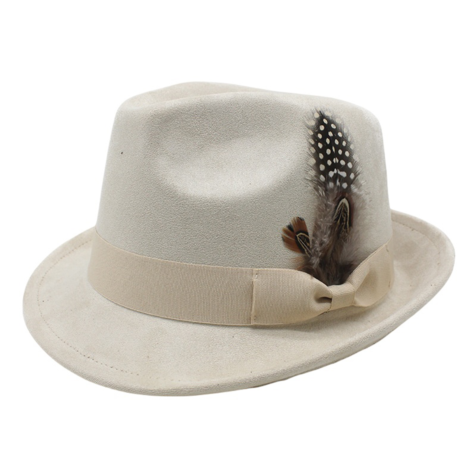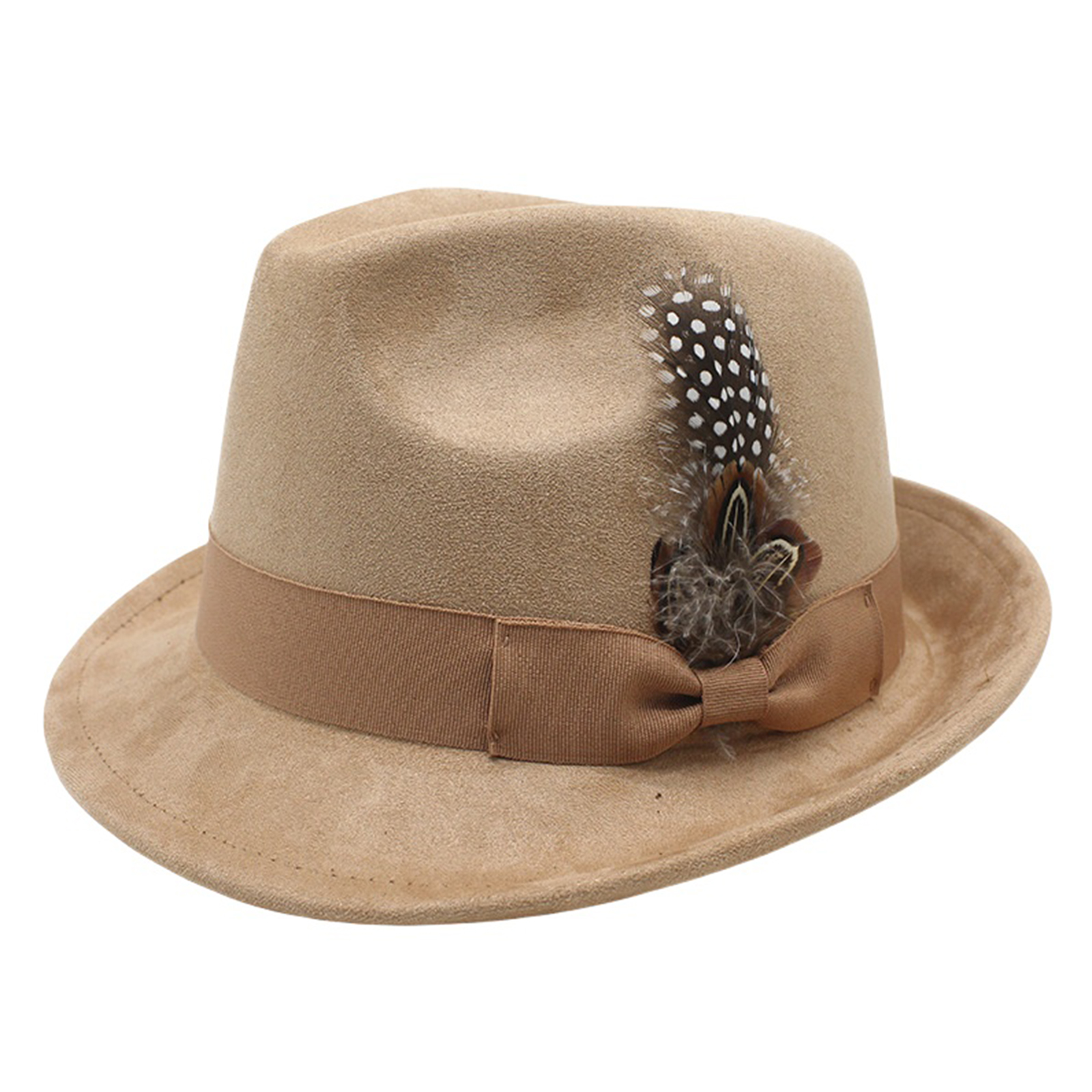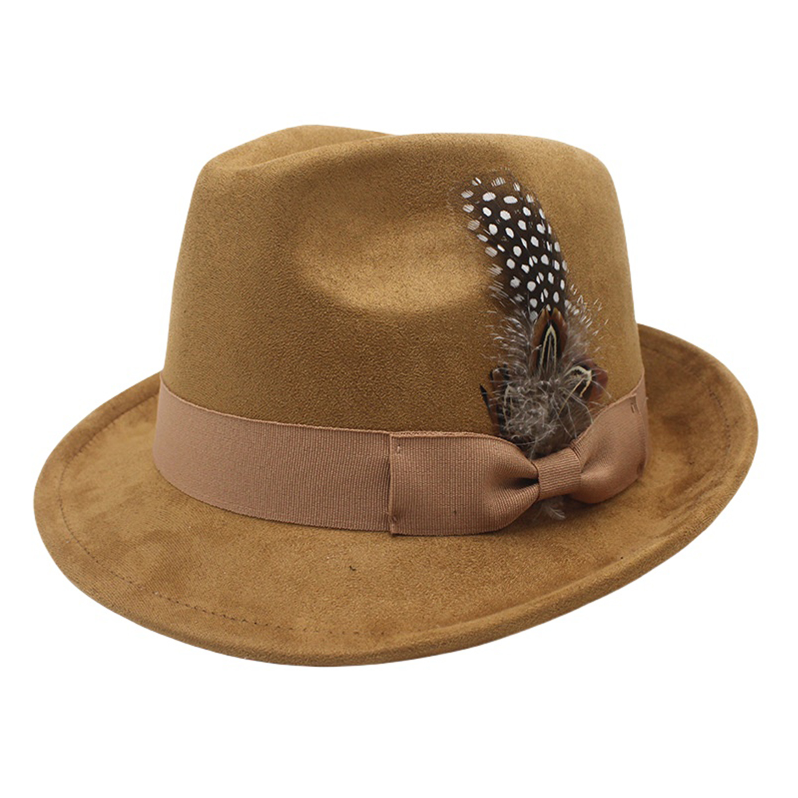 Classic Fedora Hats for Men Women Short Brim Felt Feather Hat Panama Dress Hat