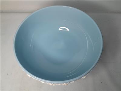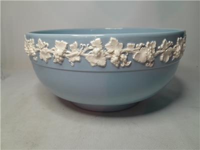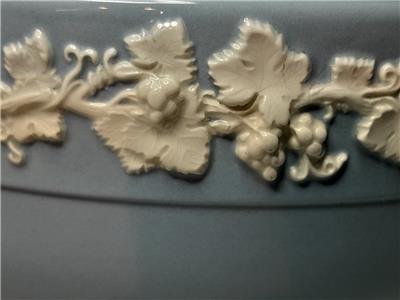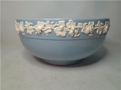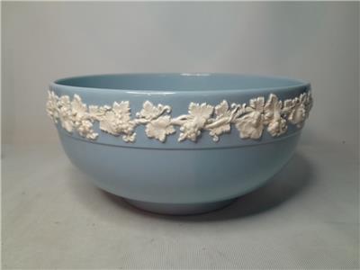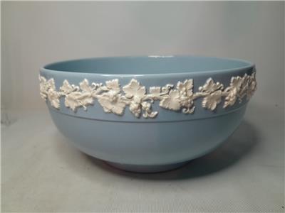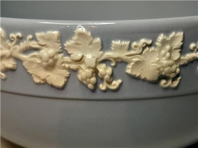 This is a lovely Wedgwood serving bowl that appears to have had little if any use. It is in excellent condition with no chips or cracks to the blue ground. If looked at very closely there is some minor cracking to the white vine embossing and whilst that often happened during production you do need to be aware of it. It stands approximately 4.25 inches (10.75cm) high with an internal diameter of approximately 8.5 inches (21.5cm) at the rim.