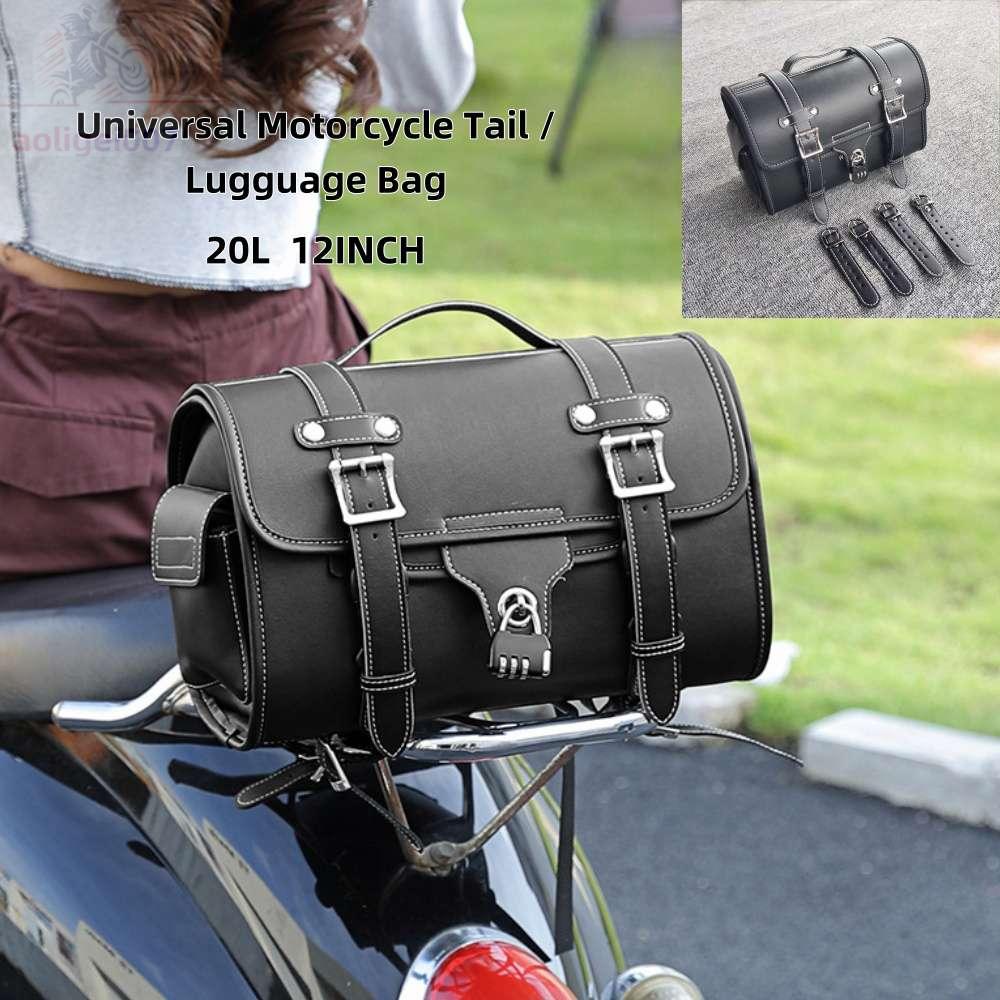 Motorcycle Rear End Hanging Bag Retro Waterproof Electric Vehicle Pedal Trunk Rack Rear Seat Bag Universal Combination Lock