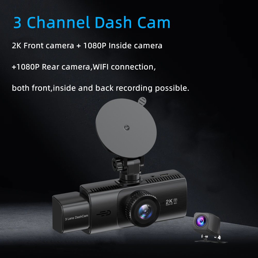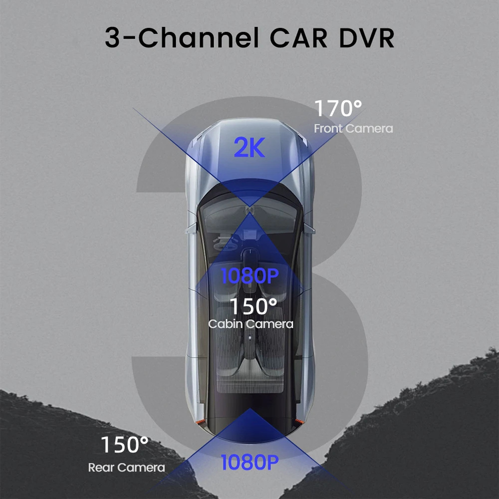 Make your driving safer with 3-channel dash cam in your car!