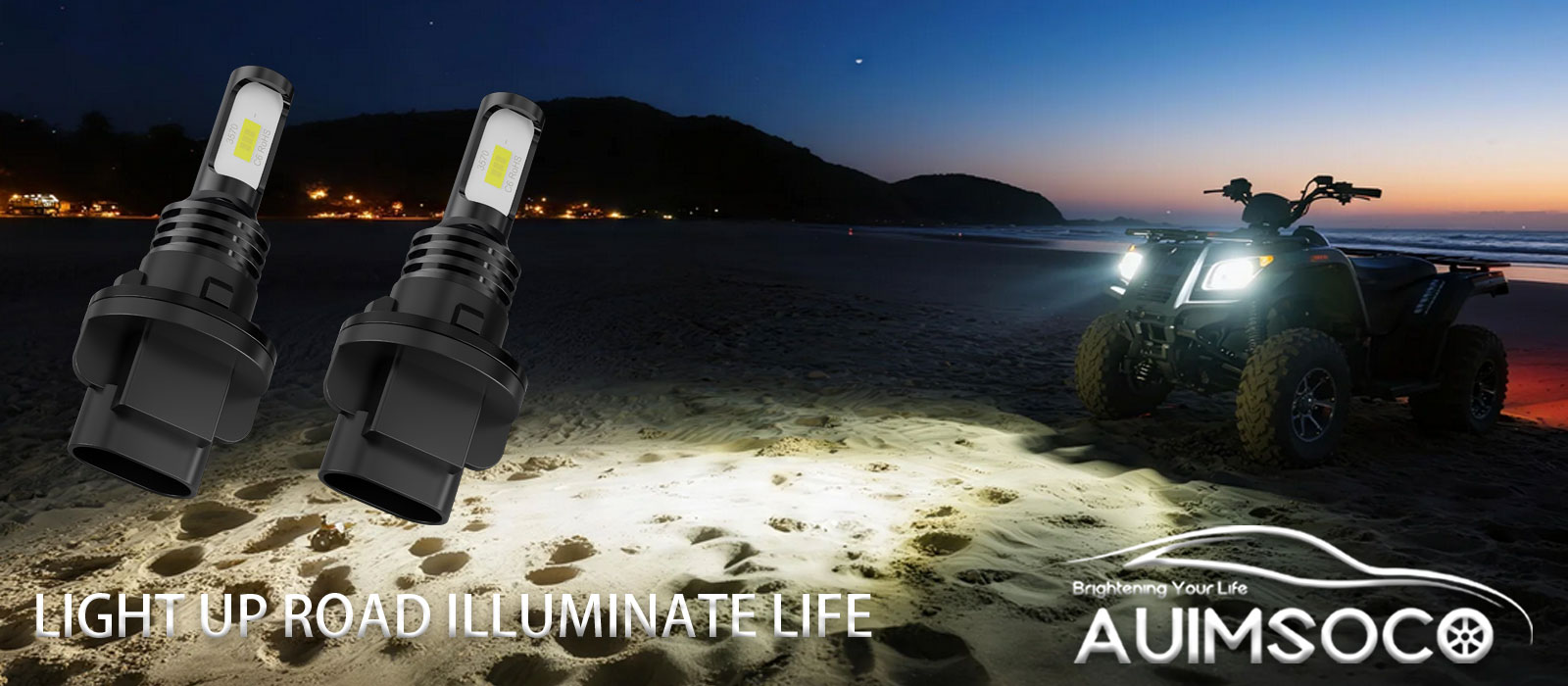 【Perfect Beam, No Dark Spots】AUIMSOCO ATV/UTV led healight bulb uses a 1:1 halogen beam design and ultra-thin chip copper plate to ensure 360° illumination without black spots. Will not turn a blind eye to oncoming traffic and drivers, driving at night is safer