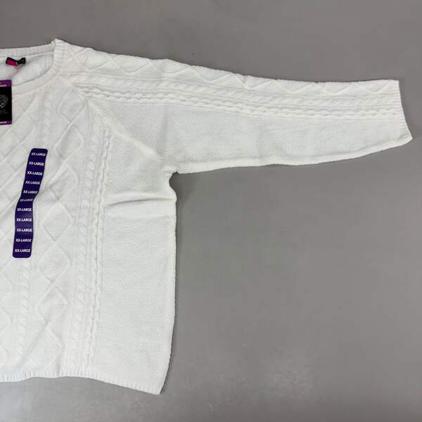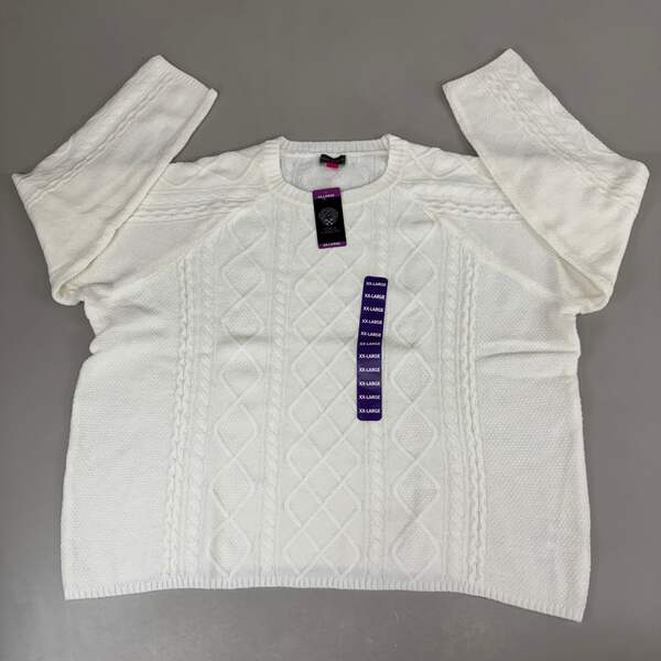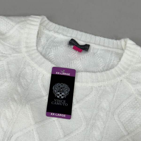 VINCE CAMUTO Cable Knit Sweater Condition: New Size: Women's Sz-XXL Color:Antique White MPN/Model: SC2895 Description: Crew neckline Cable knit pattern Long Raglan sleeves Banded hem and wrists Spandex material makes for added stretch 73% acrylic/24% polyester/3% spandex Hand wash cold separately Pullover style