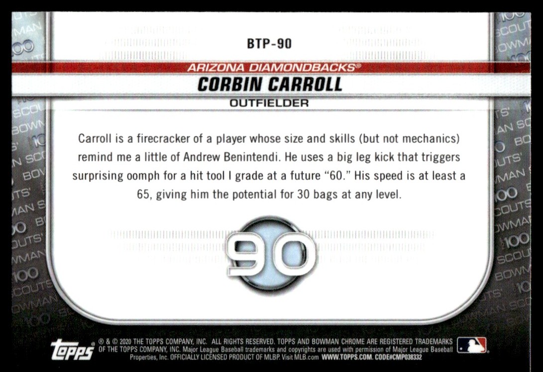 | 2020 Bowman Scouts Top 100 Corbin Carroll Arizona Diamondbacks #BTP-90 |