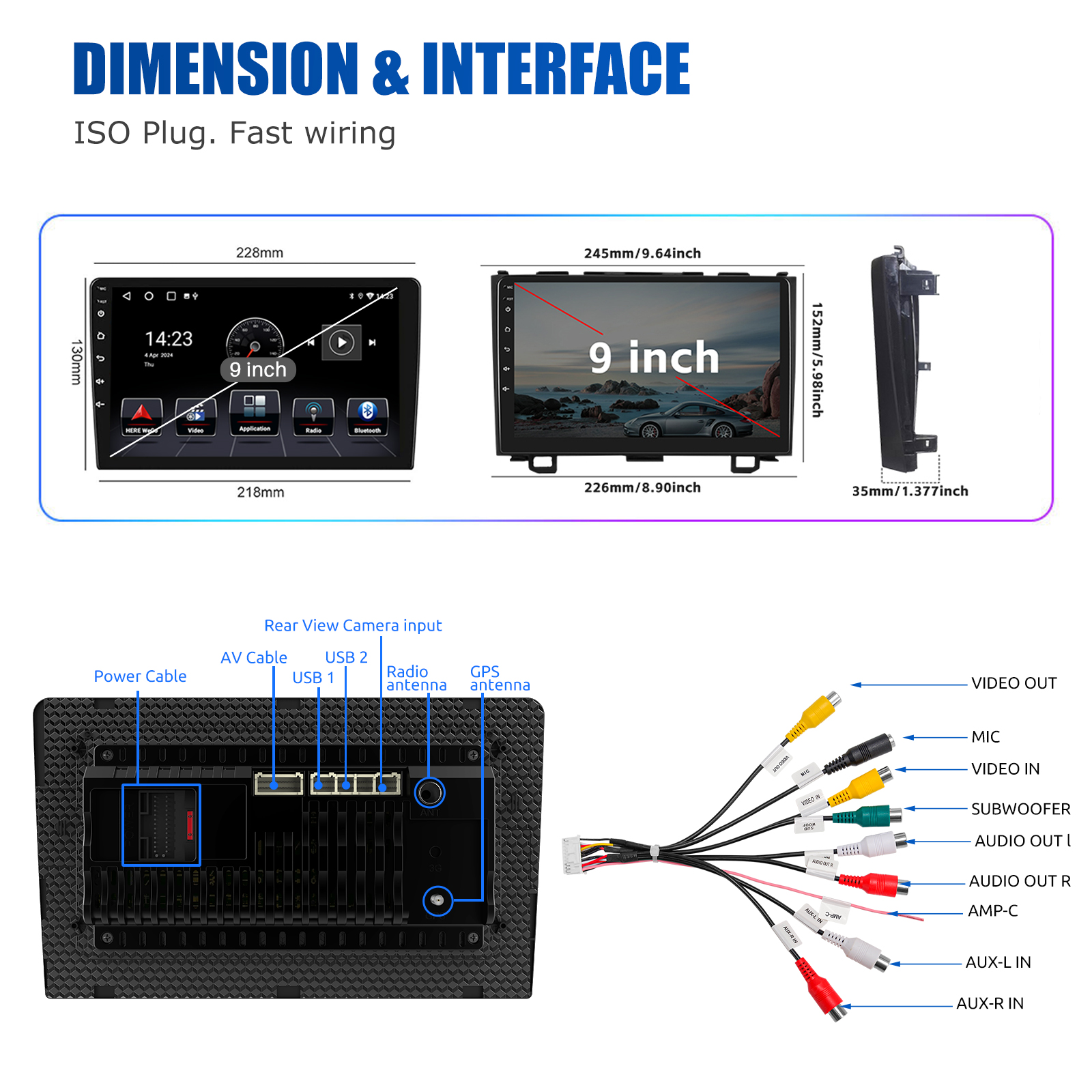 RDS/FM Radio & Bluetooth & ASP Sound Setting: Supports Bluetooth 5.0, with built-in microphone so you can make hands-free calls while driving. Support access to phone book, music playback interface, etc. RDS supported. You can save 18 FM radio stations. Built-in ASP chip. Supports 32-band EQ setting, which can be adjusted according to your personal preference. Which is very similar to your original sound. 4 x 45W amplifier, surround sound and subwoofer output