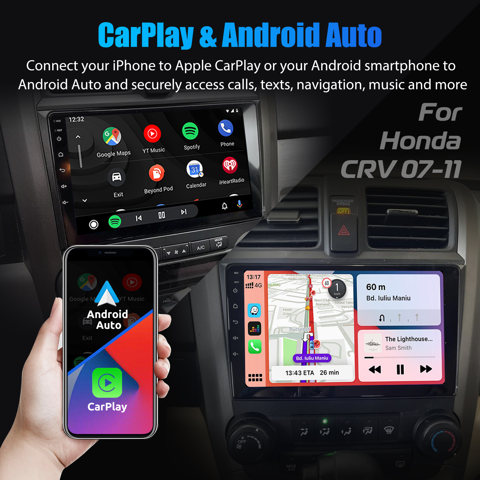 9 Inch Android 13 Car Radio For Honda CRV 2007-2011: The Android car radio with 9" 1280* 720 IPS touchscreen , 2GB RAM and 32GB ROM