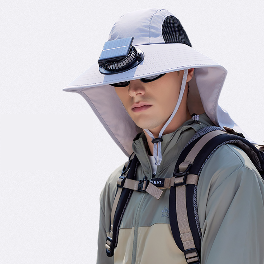 【DUAL POWER FAN SUN HAT】Built-in 1 battery solar fans, can be outdoor solar charged and USB charged in two ways. Three wind speeds fill up 2-3 hours and working time above 7-9 hours (pure batter drive).