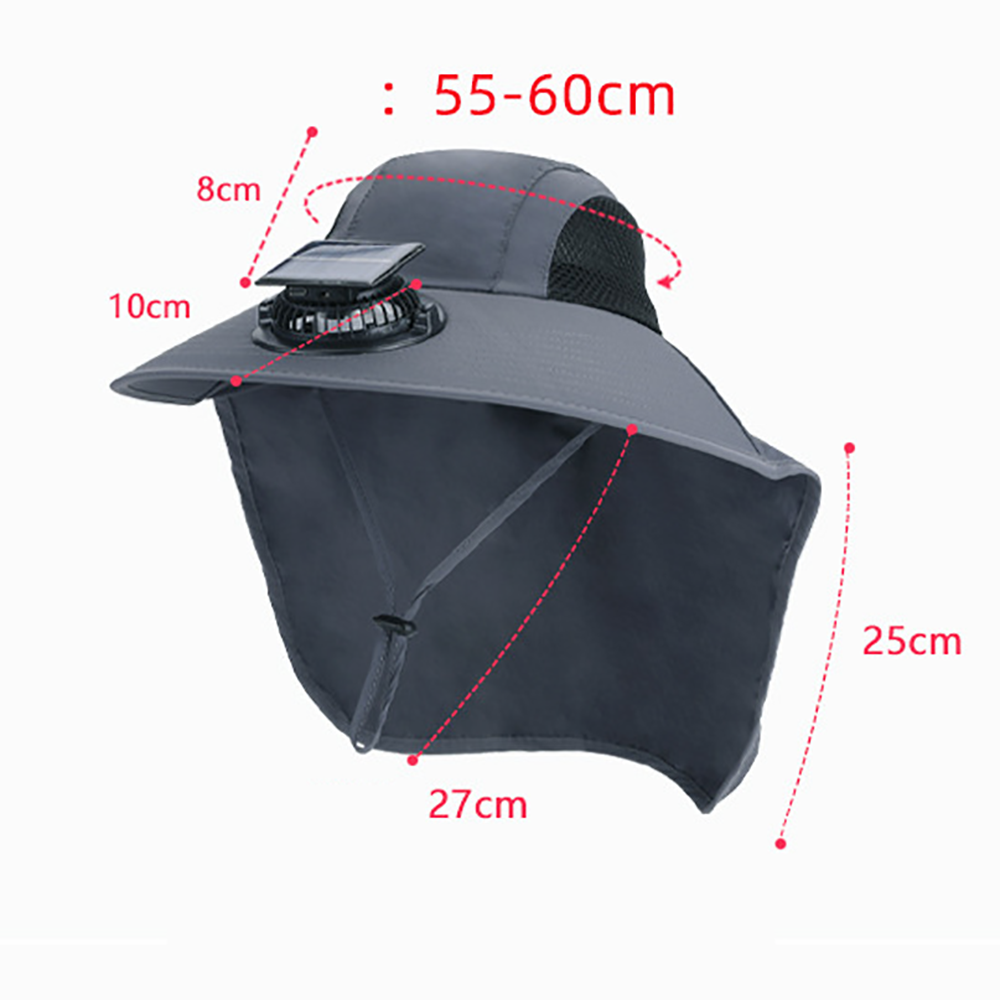 【SOLAR FAN OUTDOOR HAT】Our Solar Fan Hat features a rear elastic drawstring, ensuring a snug fit for both men and women with head sizes ranging from 22.05" to 23.6". It's designed for lightweight, comfortable wear throughout your outdoor adventures.