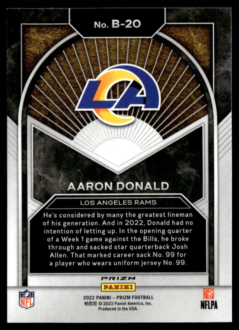 | 2022 Panini Prizm Brilliance Aaron Donald Los Angeles Rams #B-20 |