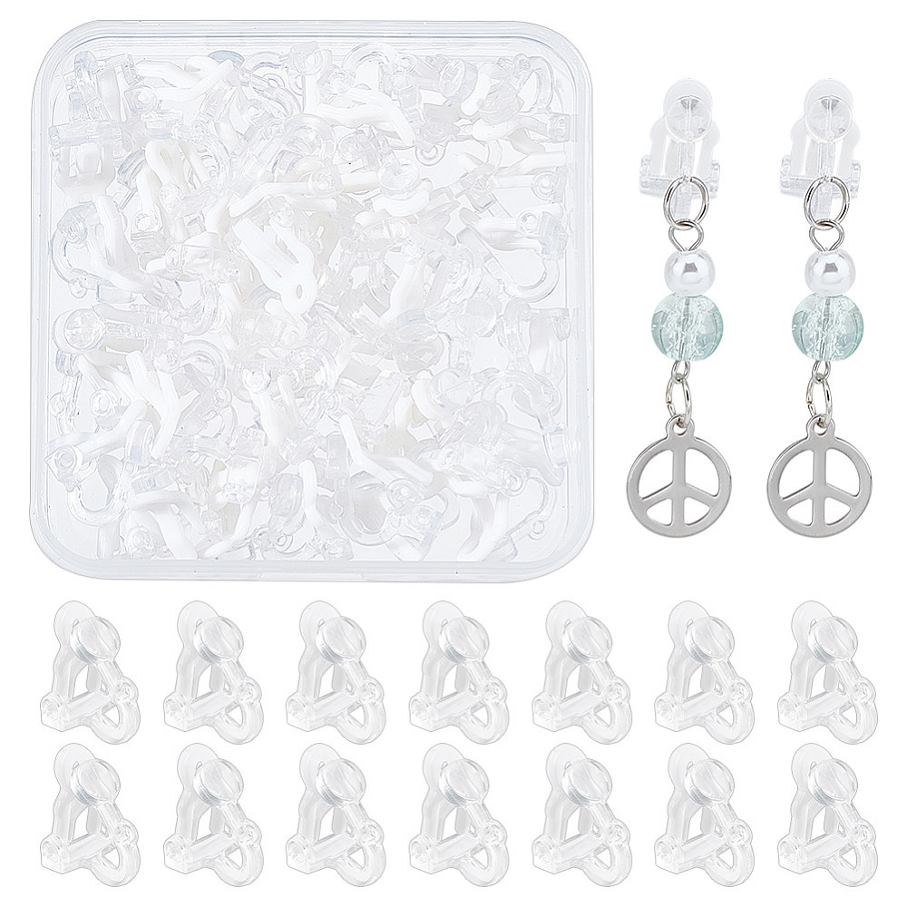 Plastic Clip-on Earring Findings: about 14mm/0.55inch long, 9mm/0.35inch wide, 13mm/0.51inch high, 50pcs;