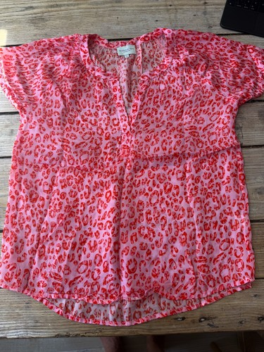 A beautiful silky blouse from PRIMROSE PARK, in pinks and red animal print design, with an open neckline and short sleeves - such a pretty style!!