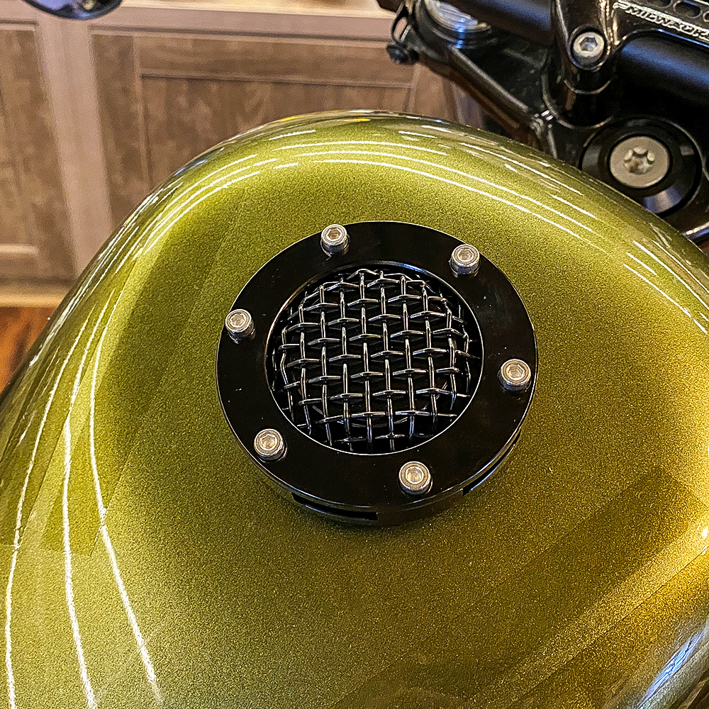 1.This vented cap gives your tank some attitude and sleek custom look