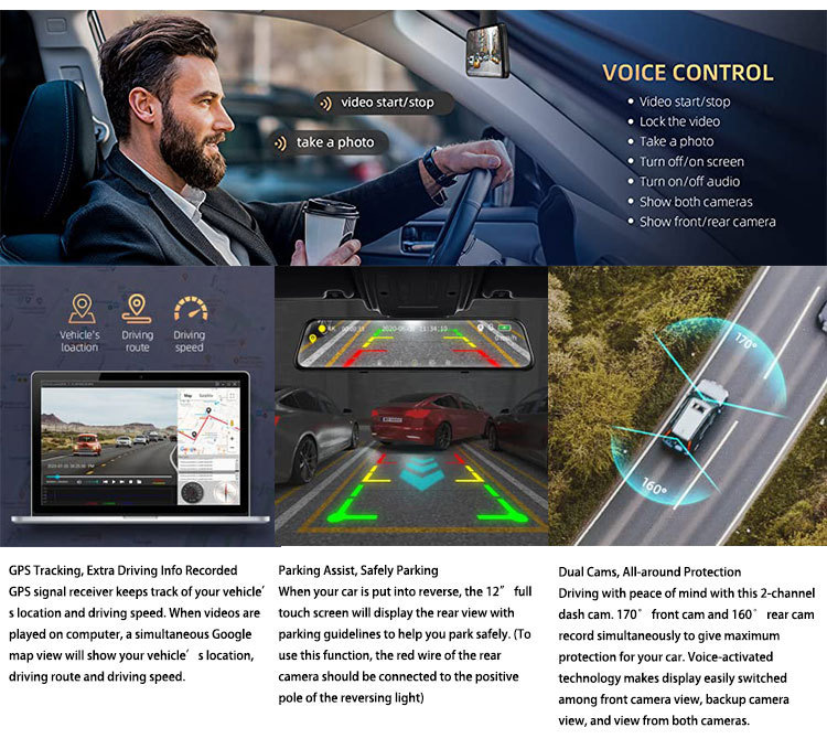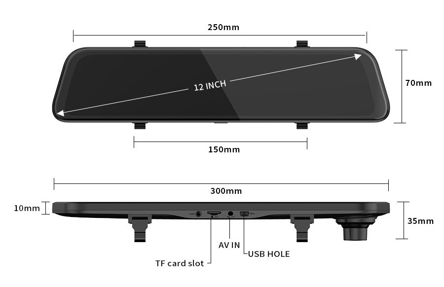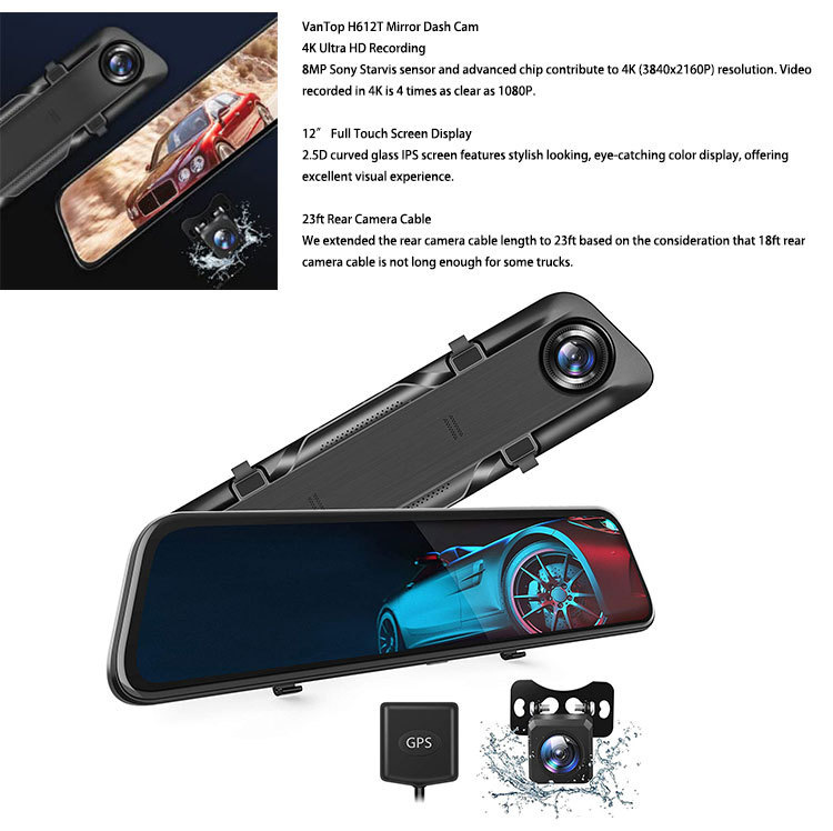 Application: 4K Camera, Streaming media rearview, Excellent night vision, Reversing video, 24h Parking monitor(Need to use special cable, not included), Collision sensor, Front and rear dual video, Loop recording,