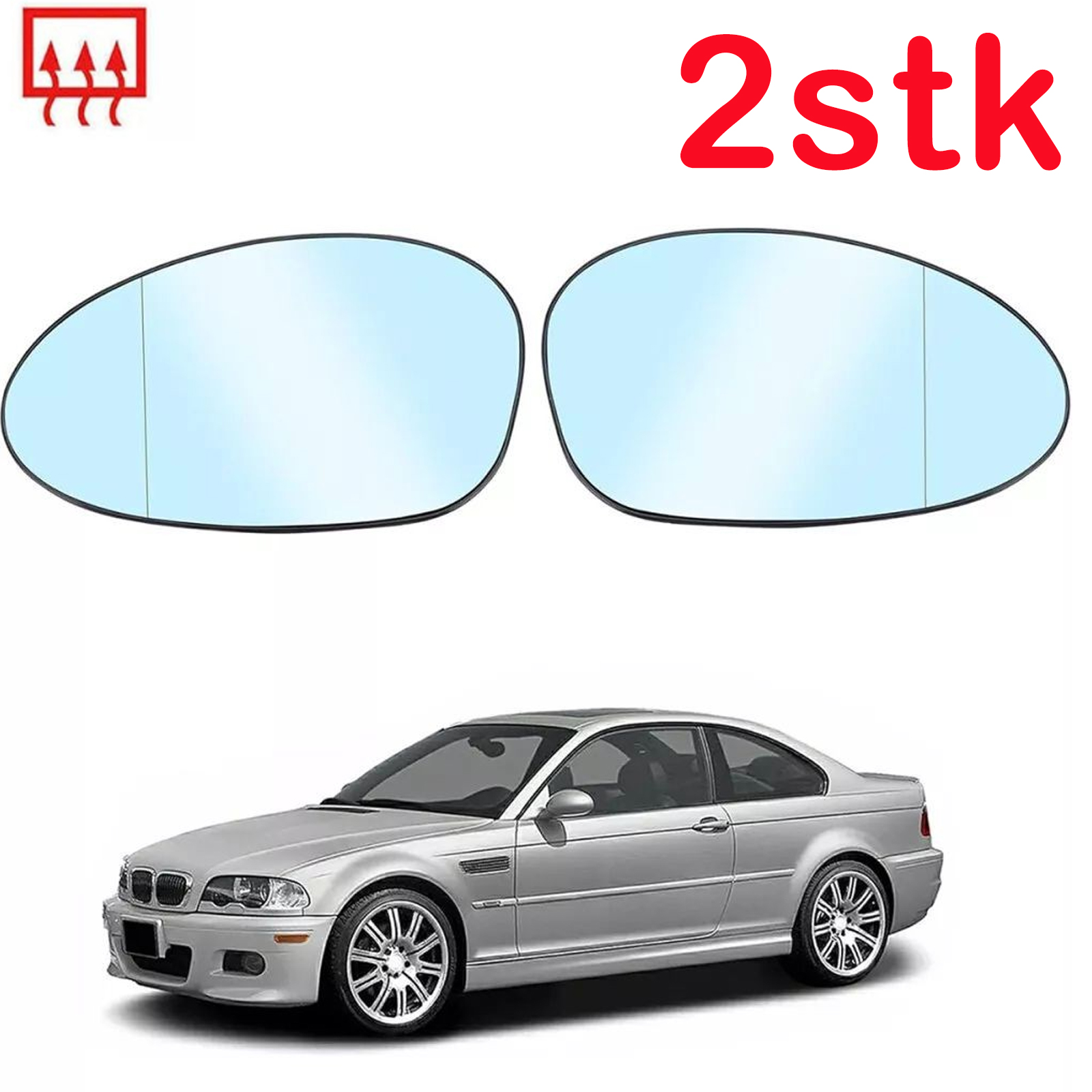 ● Für BMW E46 M3 Die Spiegelgläser sind Himmelblaue, asphärisch und el. beheizbar.