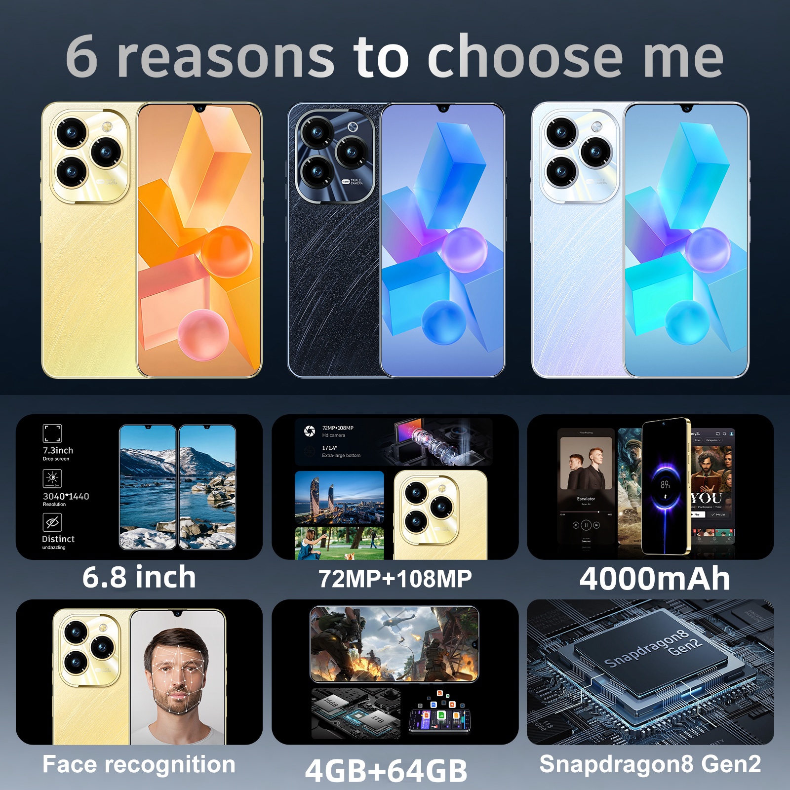 4.Screen: 6.8HD+ Full Display 1440*3200