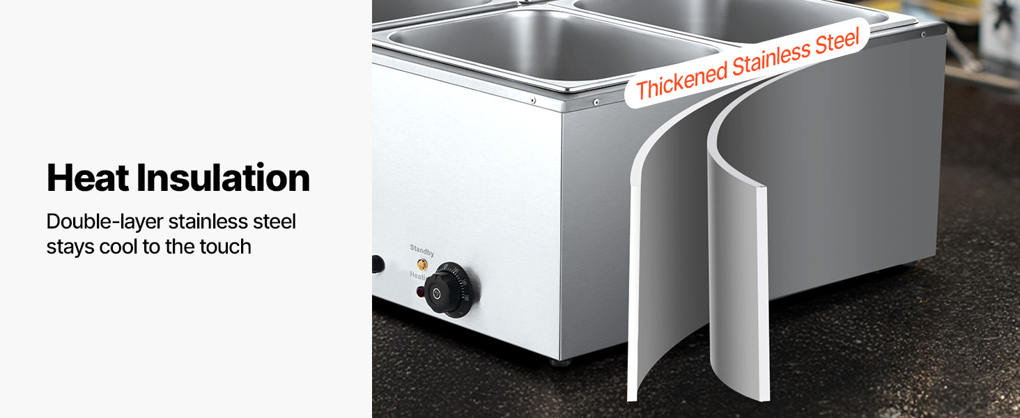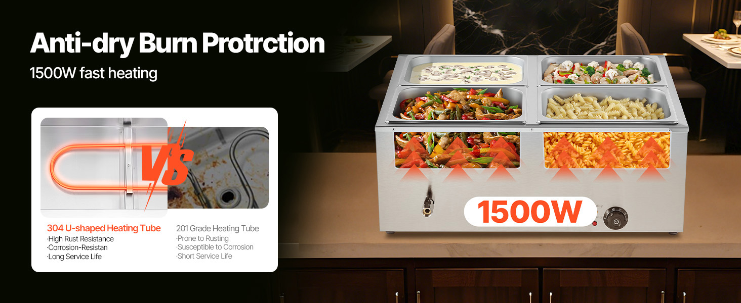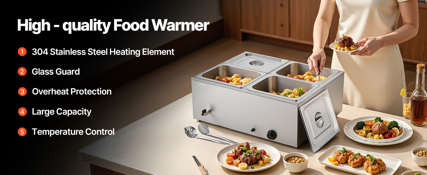 - Durable Construction: Crafted from stainless steel, this electric food warmer ensures reliable and consistent performance. The U-shaped heating tube made of stainless steel distributes heat evenly, maintaining efficiency even with frequent use.