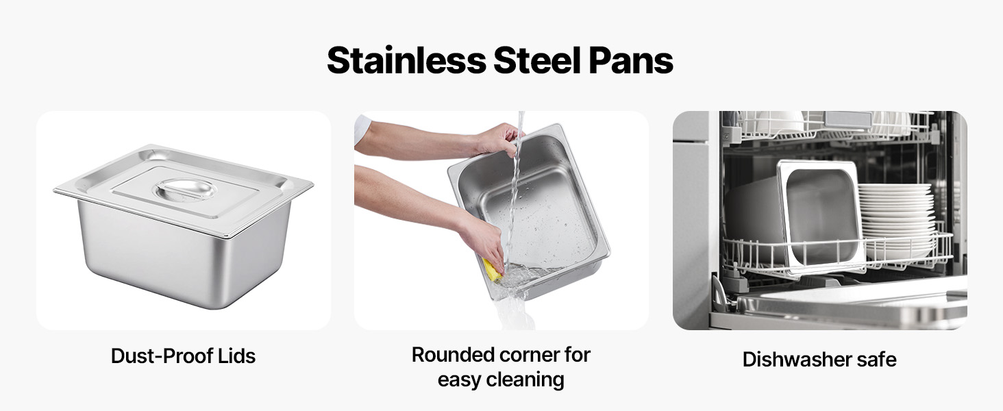 - Effortless Cleaning Made Easy: The sleek, nonstick surface of this steam table ensures grease and stains can be wiped away in moments. Its removable components allow for deep cleaning, eliminating hard-to-reach areas and maintaining a tidy setup after every use.