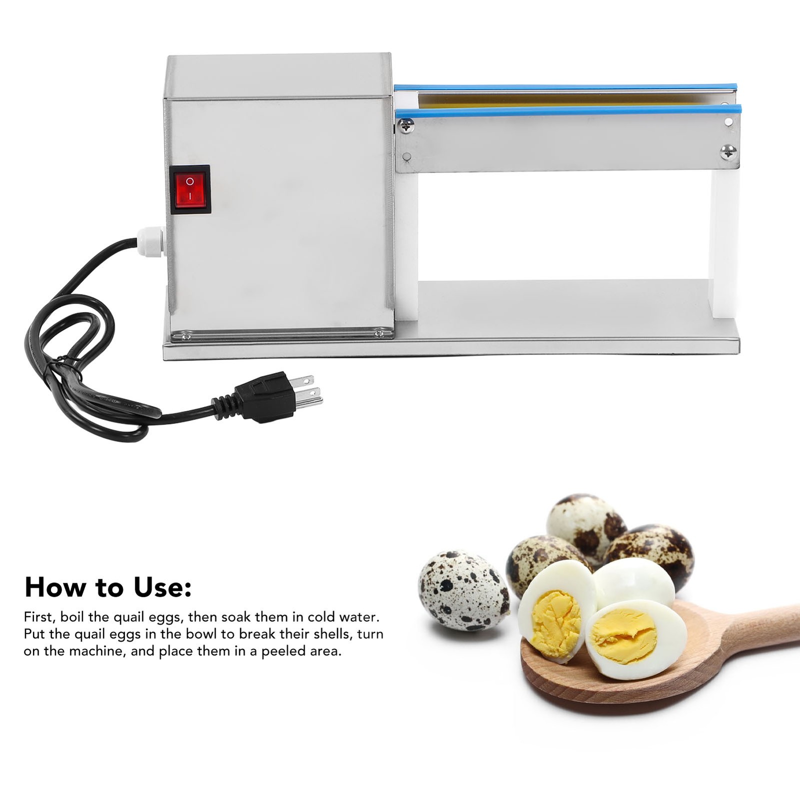 1. Quick for Peeling: No more manual works, this electric quail egg peeler can quick peel off the shell of quail egg, saving your time and effort.