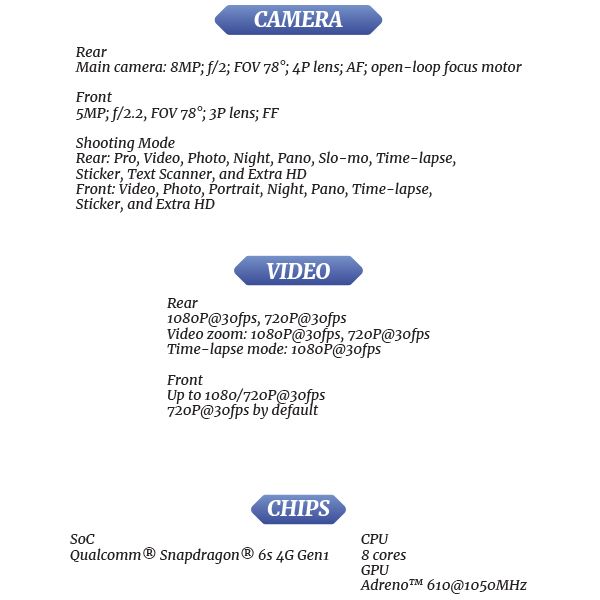 - Snapdragon 6s 4G Gen1 Mobile Platform offers efficient, smooth 4G performance.