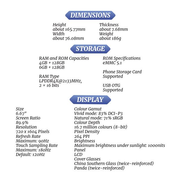 - 90Hz refresh rate, 89.9% screen-to-body ratio, 6.67" screen size.