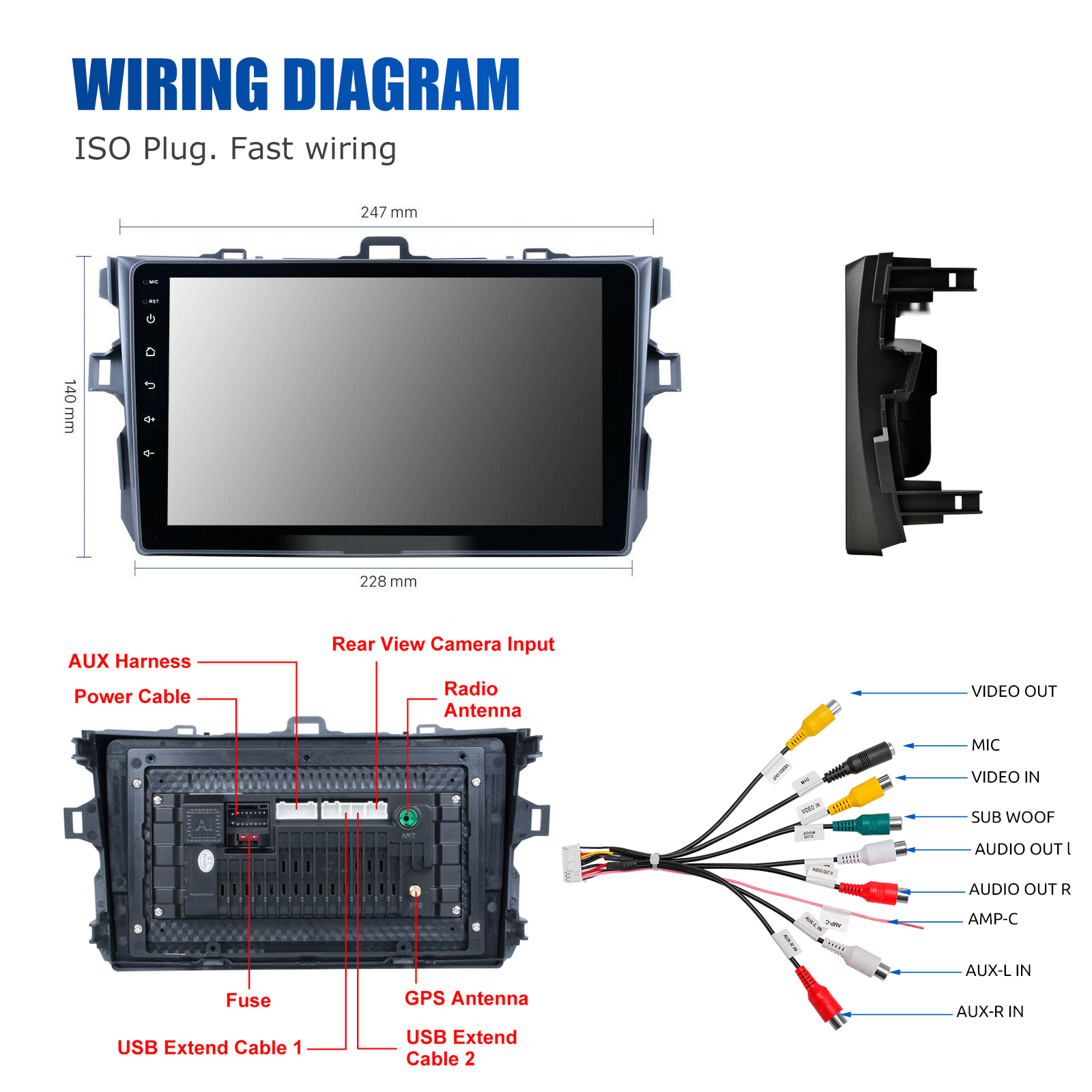 RDS/FM Radio & Bluetooth & DSP/HIFI Sound: Supports Bluetooth 5.0, with built-in microphone and speaker so you can make hands-free calls while driving. Support access to phone book, music playback interface, etc. Support RDS. You can store 18 FM radio stations. Supports 36-band EQ adjustment, which can be adjusted according to your personal preference. Multimedia player supports Hi-Fi function, high-fidelity, reproduced sound very similar to your original sound. 4 x 45W amplifier, surround sound and subwoofer output.