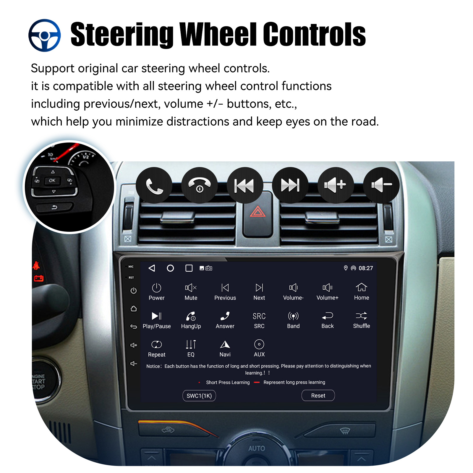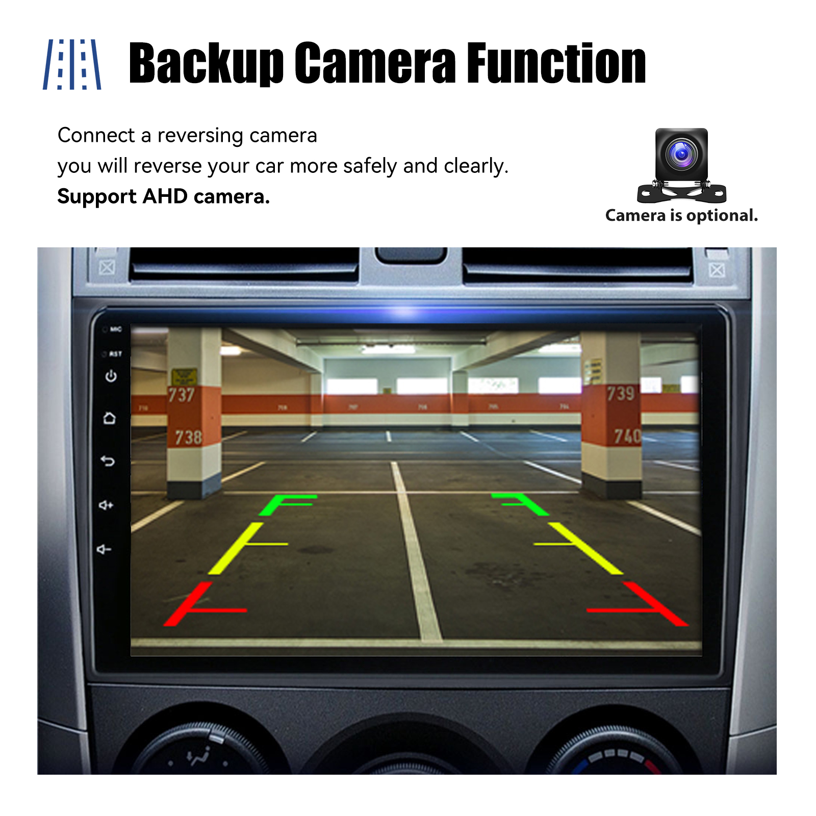 AHD Rear View Camera Input & Steering Wheel Control: After connecting to the rear view camera. The radio automatically displays the reversing image as soon as you engage reverse gear. Make your daily reversing safer. Support AHD camera. Support original car steering wheel control to make driving more convenient and safer