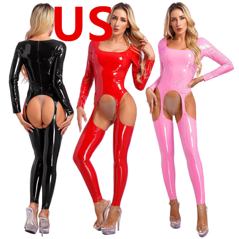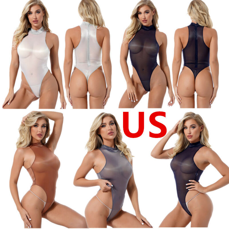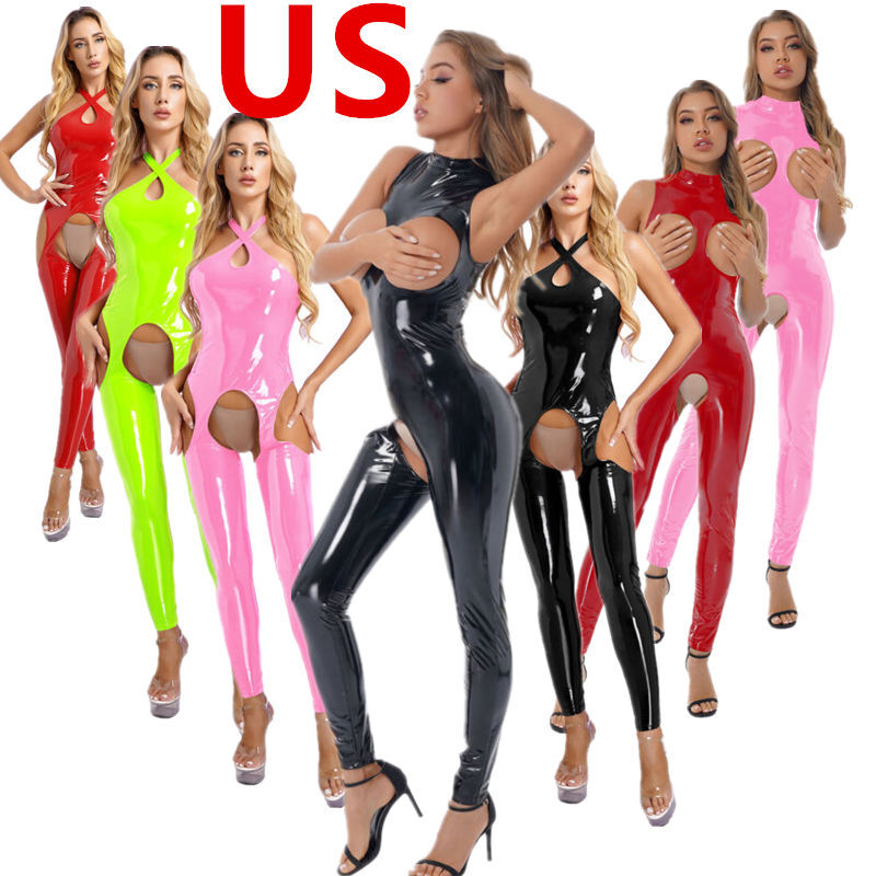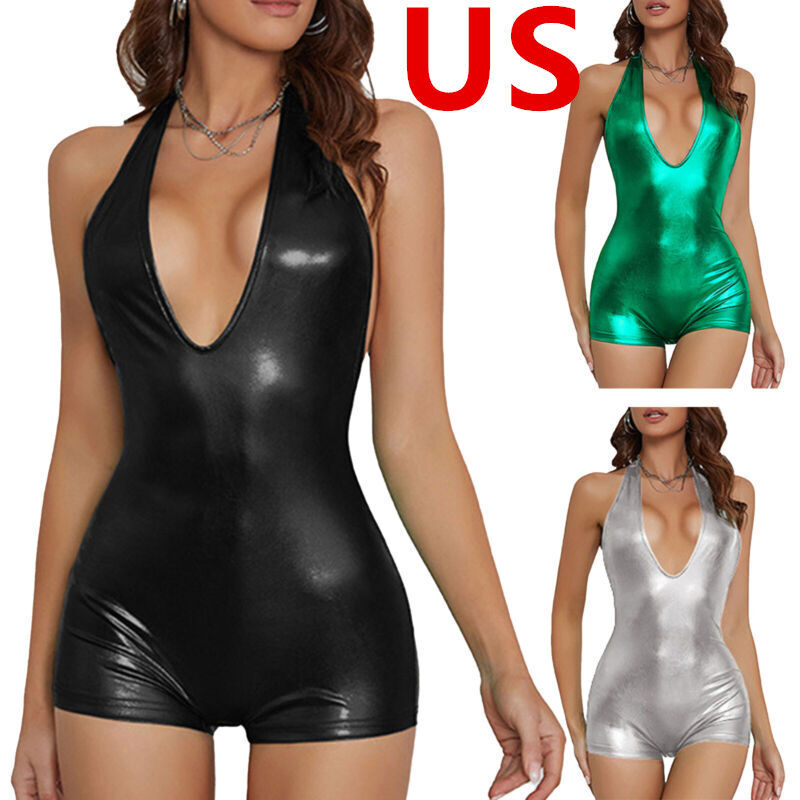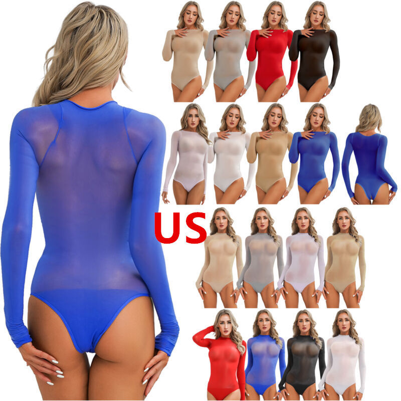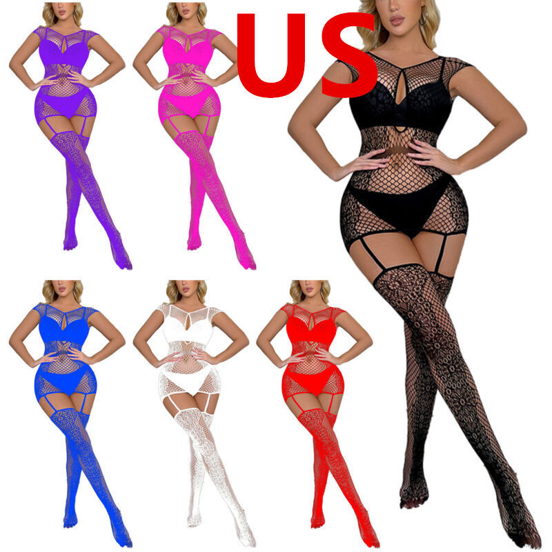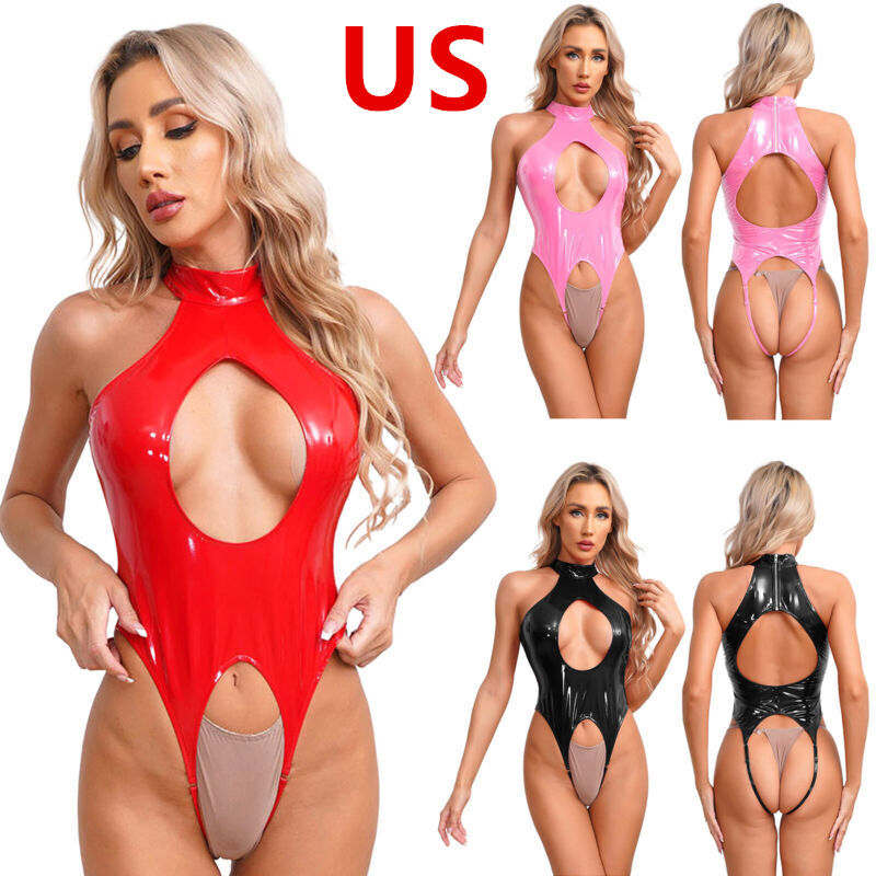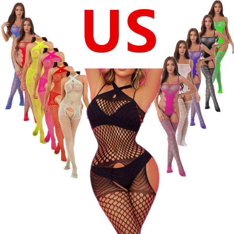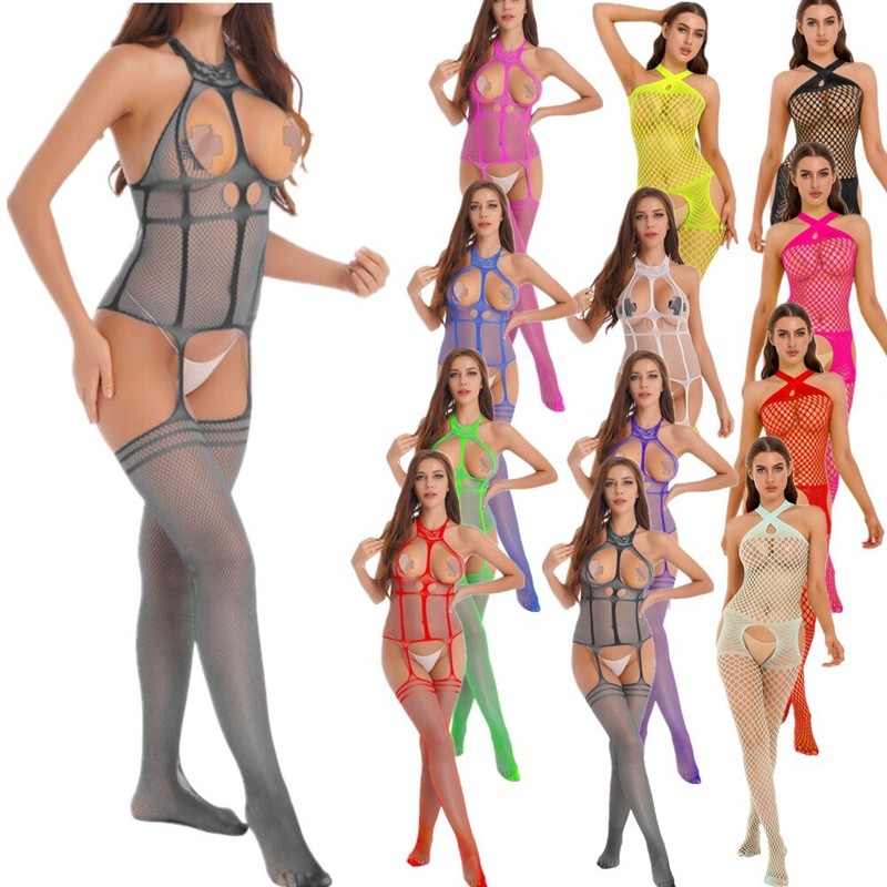 Womens See-through Mesh Crotchless Bodysuit Hollow Out Halter Backless Leotard Lingerie Nightwear.