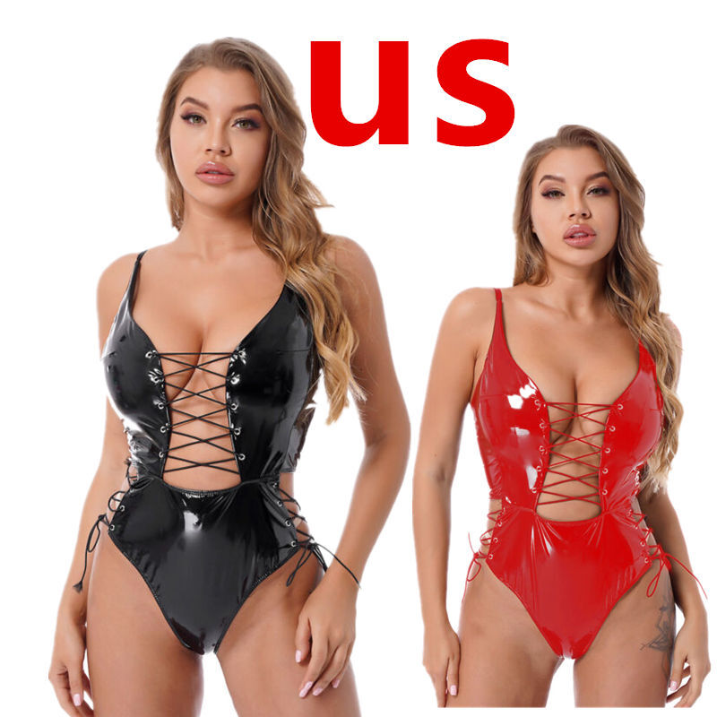 Halter neck, lace-up at back, sleeveless and backless bodysuit, a good gift for yourself or your lover.