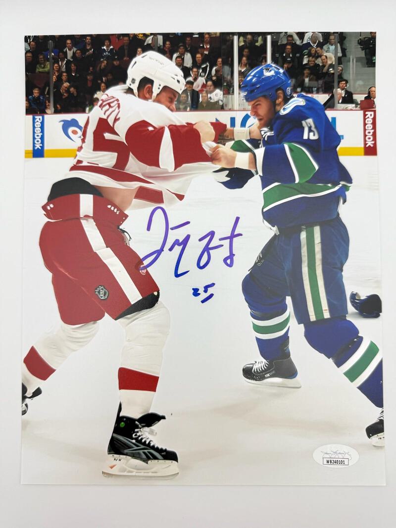 Showcase your love for the Detroit Red Wings with this autographed 8x10 photo of Darren McCarty. This photo is perfect for any hockey fan and comes with a James Spence Authentication (JSA) seal of approval. The photo features the number 25 and the player's signature, making it a must-have for any true collector.