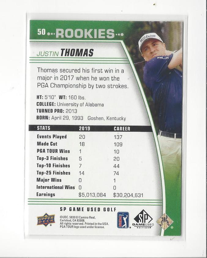 2021 SP Game Used #50 Justin Thomas RC Rookie