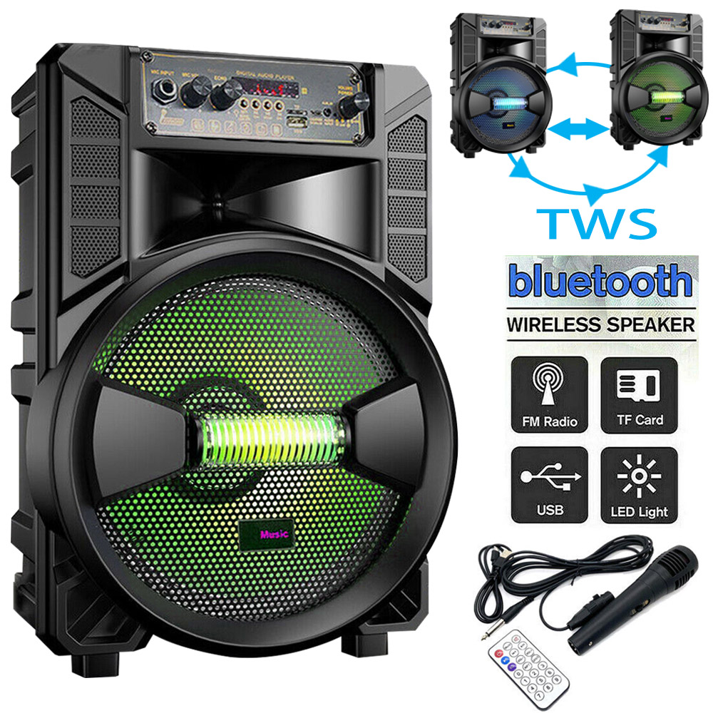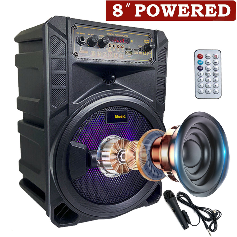 8" 1000W Portable FM Bluetooth Speaker Sound System DJ Party PA Tailgate Remote