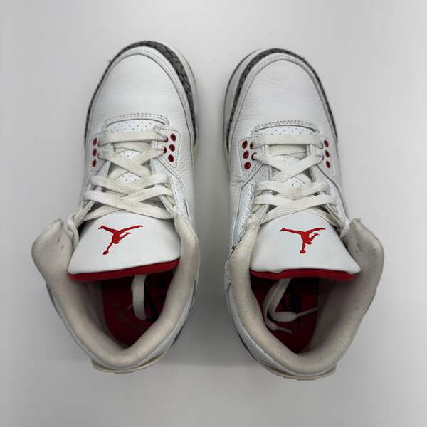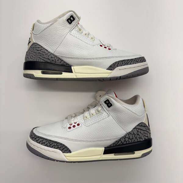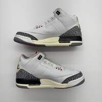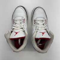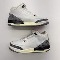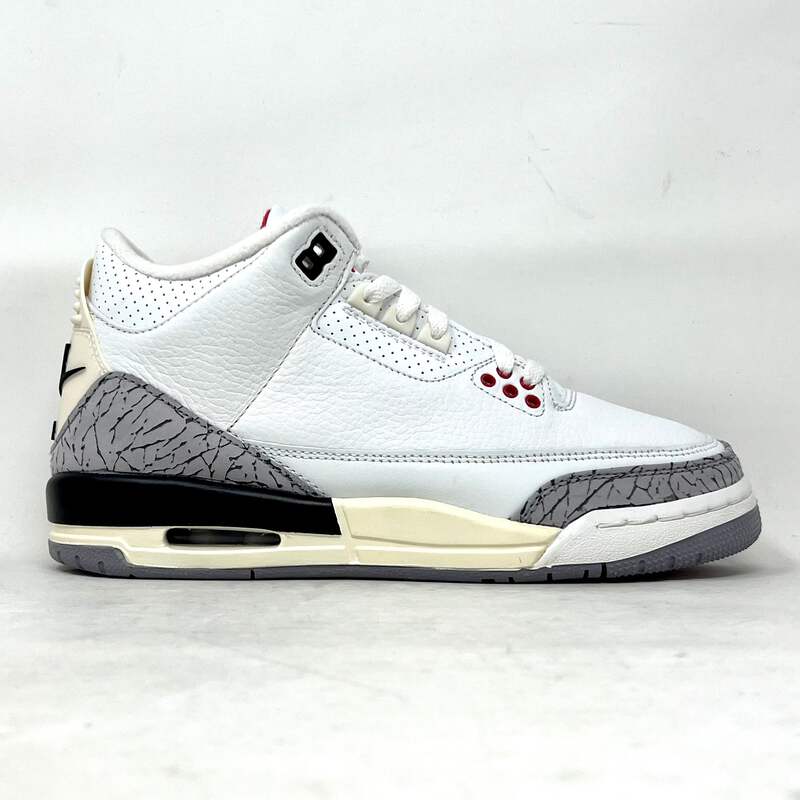 The Jordan 3 Retro White Cement Reimagined in grade school sizing brings back the legendary 1988 silhouette with premium craftsmanship. This iconic colorway features crisp Summit White leather with Fire Red accents, classic elephant print, and Cement Grey details that defined a generation.