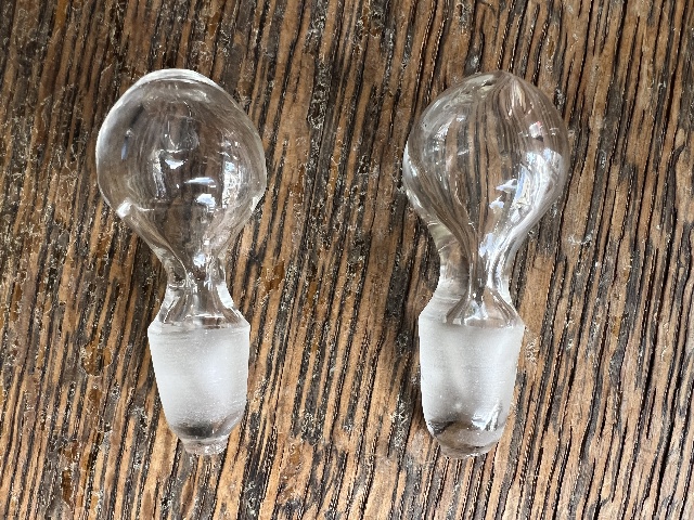 Very good condition with no chips. The stoppers have been replaced at some point. One stopper has either a crack or straw mark.