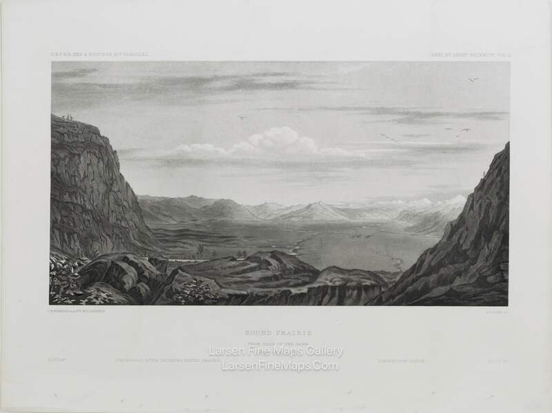 A striking print of Round Prairie and Timpanogos River as viewed from the head of the prairie on April 21, 1854, at 10 A.M..